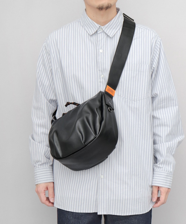 LGS-151 ユニバーサルオーバーオール 巾着ショルダーバッグ ミニショルダー メンズ レディース レザー調 巾着バッグ 斜めがけ 肩掛け 2WAY ポーチ ブラック シンプル おしゃれ UNIVERSAL OVERALL