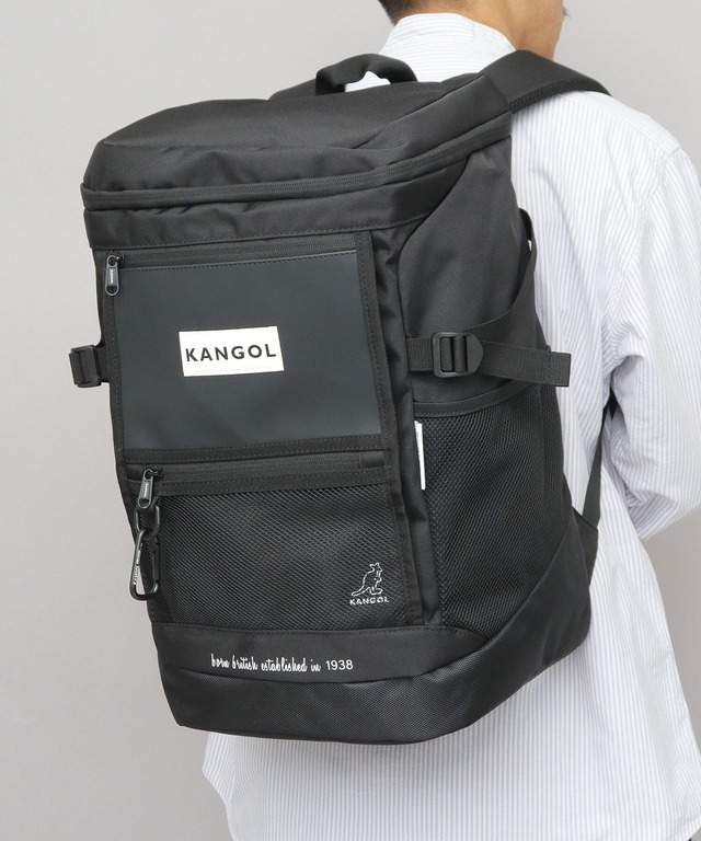 DYS-183 KANGOL カンゴール リュック バックパック ボックス型 大容量 メンズ レディース ボックスリュック コの字型ファスナー 通勤 通学 学生 旅行 アウトドア スポーツ 合宿 シンプル ロゴ 黒 ブラック カラビナ付き おしゃれ