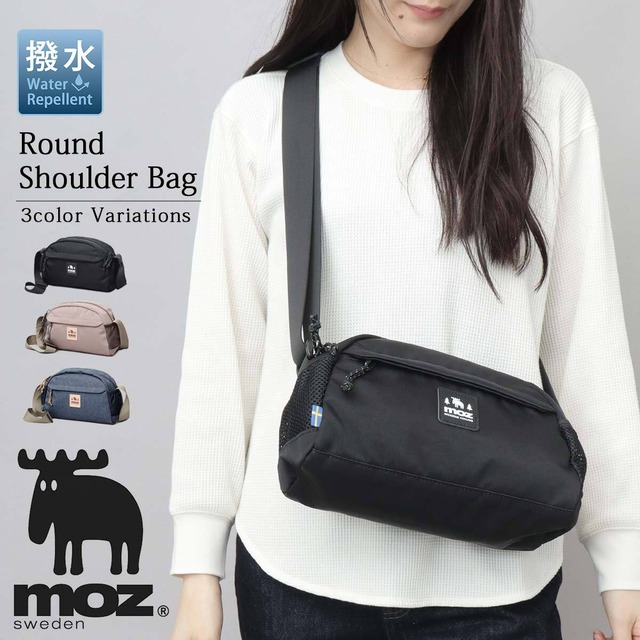 TTO-112 moz モズ ショルダーバッグ 撥水 レディース 斜めがけ ミニショルダー バッグ 軽量 小さめ ラウンド 半月型 無地 デニム シンプル ロゴ ママバッグ ミニバッグ 旅行 サブバッグ 北欧ブランド おしゃれ かわいい