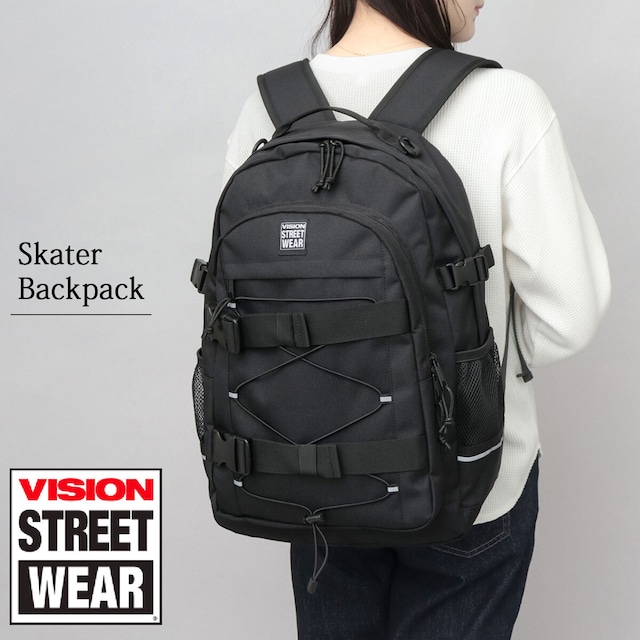 HBD-072 ヴィジョンストリートウェア リュック バックパック メンズ レディース 大容量 スケボー スケーター バッグ 2層式 A4 B4 PC収納 通学 通勤 旅行 黒 ブラック シンプル カジュアル ストリート おしゃれ VISION STREET WEAR