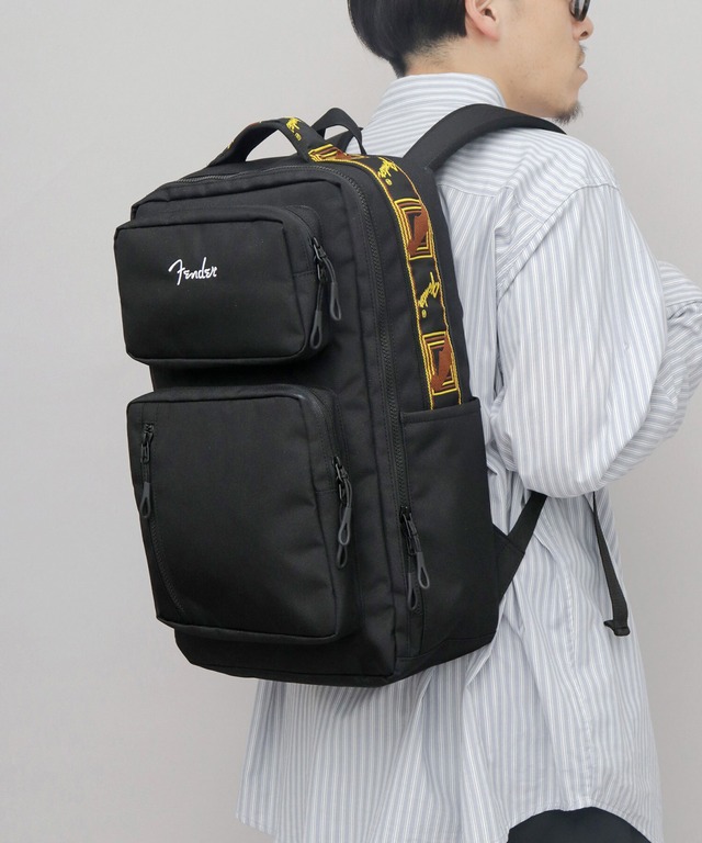 ◆通勤・通学にも使えるゆったり大きめ◎ボックスバックパック◆ エレクトリックギターの代名詞ともいえるギターメーカー“FENDER”のBOX型バックパック。フェンダーのモノグラムストラップを忠実に再現した、ヴィンテージテイストなデザインのグラブループが目を惹くアイテム。B4が収まるスクエアボディに、デイリーからビジネス、トラベルにも使える、機能性に富んだスペースを多数完備。軽量かつタフなコーデュラ生地を使用し、通勤・通学、アウトドアや旅行など、幅広いシーンで活躍してくれます。程よくシンプルなので、フェンダーファンのみならず、多くの方に使いやすい大きめリュックです。 ■Point 01■ シンプルながらもフェンダーらしいカラーデザインが魅力のBOX型バックパック。 ■Point 02■ トップ部分に、フェンダーのモノグラムストラップを忠実に再現した、ヴィンテージテイストなグラブループ(持ち手)を配置。フェンダーロゴとヘッドストックの刺繍が入った不朽のデザイン。 ■Point 03■ メイン収納スペースは、A4・B4サイズが収まる大容量サイズ。内部は広いマチ幅で、全面にクッション材を配置した、安心の作り。内側には、ノートPCやタブレットの収納に最適なマジックテープ付きクッションポケットに加え、視認性の良いファスナー付きメッシュポケット×2を完備。 ■Point 04■ 間口は、コの字ファスナー仕様。サイド下までしっかり開いて、荷物の出し入れが楽に。 ■Point 05■ フロントには、立体感のあるファスナーポケットを上下に配置。 ▼上部▼ 浅めのファスナーポケット。内側には、オープンポケットとファスナーポケットを完備。刺繍ロゴがワンポイント。 ▼下部▼ A5が収納可能なファスナーポケット。内側には、オープンポケットとファスナー付きメッシュポケットを完備。外側には、縦ジップのファスナーポケットを配置。 ■Point 06■ 背面には、内部に微起毛素材を使用したファスナーポケットと、A4が収納可能な広い間口のクッションポケットを配置。 ■Point 07■ 両サイドには、ペットボトルなどの収納に便利なオープンポケットを配置。 ■Point 08■ ショルダーベルトは幅広の設計で背負いやすく、肩への負担を軽減。上下に位置調節が可能なチェストベルトを完備。Dカン付き。 ■Point 09■ バッグ背面・ショルダーベルトの中には、厚みのあるクッション材入り。裏側に通気性の良いメッシュ素材を使用し、不快な蒸れを軽減。 ■Point 10■ 素材には、軽量かつ耐久性に優れた、インビスタ社の登録商標生地CORDURAポリエステルを採用。バッグ内側に配置されたピスネームが、『タフで丈夫な素材』の証。 ■Point 11■ 各ファスナーは、安心のYKK製。外側のファスナーには、ジッパータブ付きで、スムーズに開閉が可能。 ■使用感■ 通勤・通学バッグはもちろん、旅行用バッグとしても使いやすい、多機能リュックです。パッキングがスムーズに行える縦開きタイプ。PCスリーブとしてはもちろん、書類やファイルの仕分けに便利なクッションスペースが2箇所にあるので用途に合わせて使い分けが可能◎たっぷり広マチの大容量サイズなので、部活で荷物が多い学生さんやジム・ヨガに通っている方にもおすすめ。ロック系やカジュアル、ワークスタイル、ストリートなど幅広く合わせやすいです。ユニセックスアイテムなのでプレゼントやギフトにも! ■スペック■ 閉じ口:ファスナー/ 外ポケット:ファスナーポケット×5 , オープンポケット×2/ 内ポケット(メイン収納スペース):マジックテープ付クッションポケット×1, ファスナー付メッシュポケット×2/ 内ポケット(上フロントポケット):オープンポケット×1, ファスナーポケット×1/ 内ポケット(下フロントポケット):オープンポケット×1, ファスナー付メッシュポケット×1/ ■寸法■ 横幅:約28.0cm/ 高さ:約44.0cm/ 間口(クッションポケット):約26.0cm/ マチ:約14.0cm/ ショルダーベルト:~約92.0cm(最長)/ ■素材■ CORDURAポリエステル(610D)/ ■重量/ 容量■ 約875グラム/ 約19.5リットル/ ■原産国■ ベトナム製/ ■ブランド説明■ 『 Fender / フェンダー 』 1946年、レオ・フェンダーによって南カリフォルニアで創設された世界的楽器製造メーカー。ビギナーや愛好家、世界的アーティストやパフォーマーまで、多くの人がフェンダーの楽器とアンプを使用。音楽業界の代名詞となるのみでなく、文化の象徴にもなっている。全世界の音楽ファンの期待を上回るべく、Fender の伝統的デザインとトレンドを両立させ、ライフスタイルに溶け込むアイテムを展開する。
