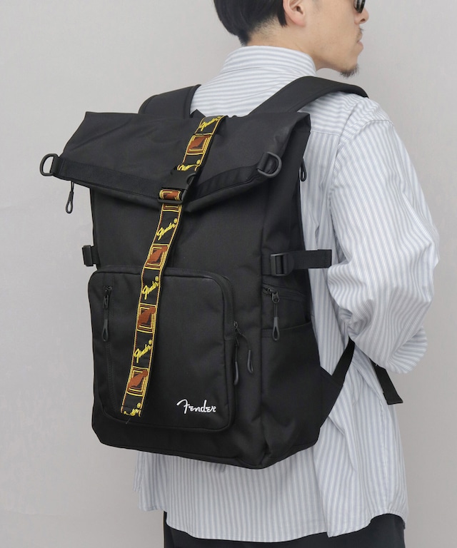 SNY-085 Fender フェンダー ロールトップ バックパック リュック メンズ レディース 大容量 CORDURA A4 B4 PC収納 通勤 通学 モノグラムストラップ ブラック カジュアル