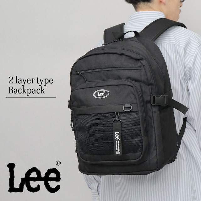 SNY-062 Lee リー リュック バックパック メンズ レディース 大容量 2層式 A4 PC収納 学生 通学 通勤 シンプル 無地 黒 ブラック ロゴ 中学生 高校生 大学生 部活 塾 スクール バッグ デイパック ストラップ付き おしゃれ