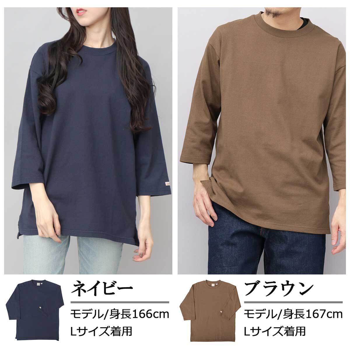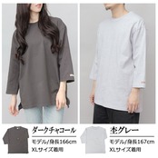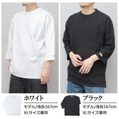 USAコットンを使用したタフでしっかりとした質感の生地で、長く愛用できそうです。洗濯する度に風合いが良くなるしっかりした生地感で、ゴワゴワし過ぎない着心地が良いです。シンプルな7分丈のTシャツは大人カジュアルスタイルにもピッタリです。Lサイズで程よいゆとりのあるサイズ感で着用できます。(167cm)