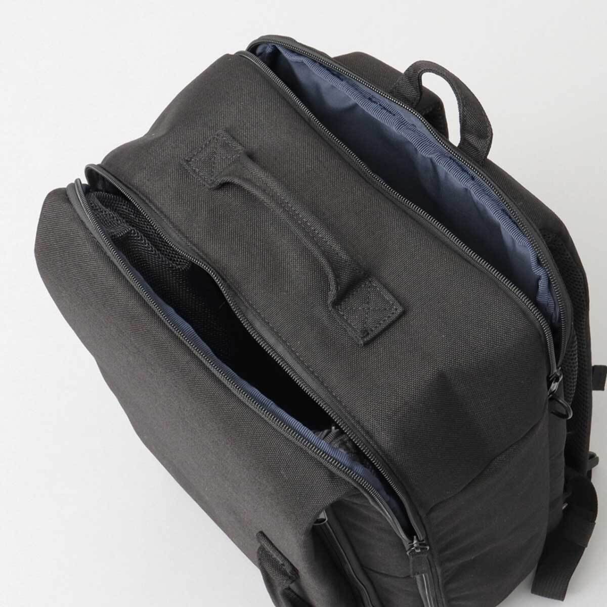 ビジネスシーンにフォーカスしたアイテムを取りそろえる“fulcro”のバックパック。無駄な装飾を省き、機能性を持たせた、扉をモチーフにしたデザインが特徴。使い勝手の良い2層の収納スペースは、用途に合わせて使い分けが可能。PCスリーブとしても使えるクッションスペースや広マチのメインスペースなど、バッグ内外にビジネスシーンにもトラベルにも使える、機能性に富んだスペースを多数完備。撥水加工を施したタフな生地を使用し、アクティブシーンにも対応。通勤・通学などタウンユースからアウトドア、旅行まで幅広く活躍します。