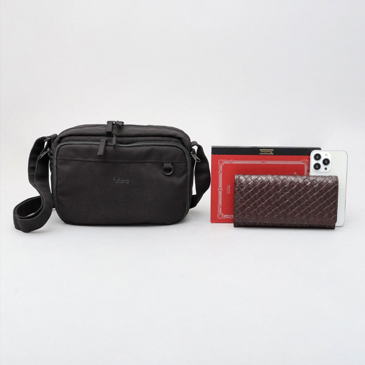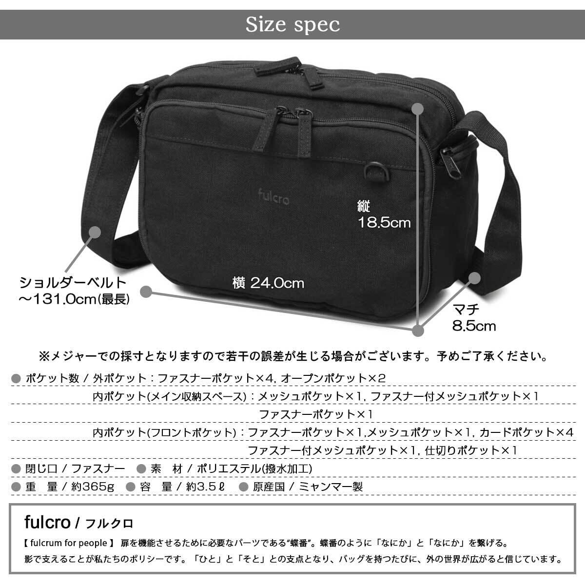 LFC-182 フルクロ fulcro ショルダーバッグ メンズ レディース 撥水 11ポケット 多機能 お財布ショルダー バッグ カードポケット A5 ミニショルダー 斜めがけ スクエア シンプル 無地 黒 旅行 ビジネス カジュアル おしゃれ | A.M.S.