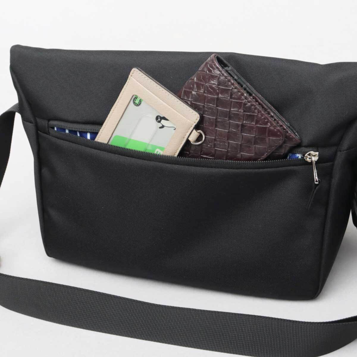 フラップ下には、しっかりマチ幅をとったオープンポケットを配置。ハンカチ・ティッシュなど、サッと取り出したいアイテムの収納に便利。