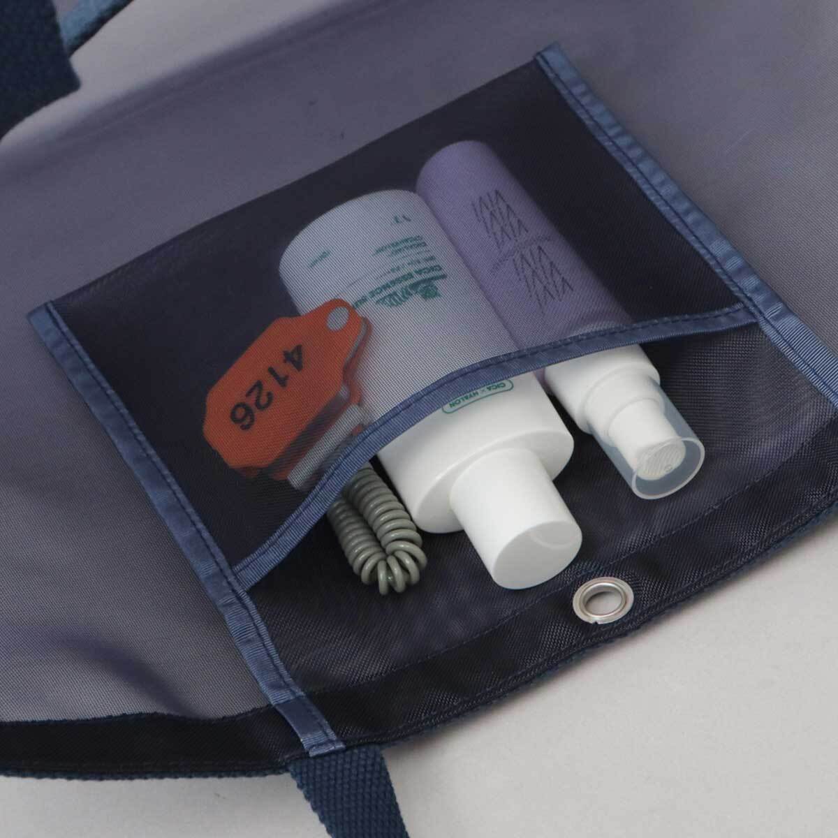 バッグ全面に通気性の良いメッシュ生地を使用。中の荷物も蒸れる事なく入れられるので、サウナにはもちろん、プールや温泉にもぴったり◎