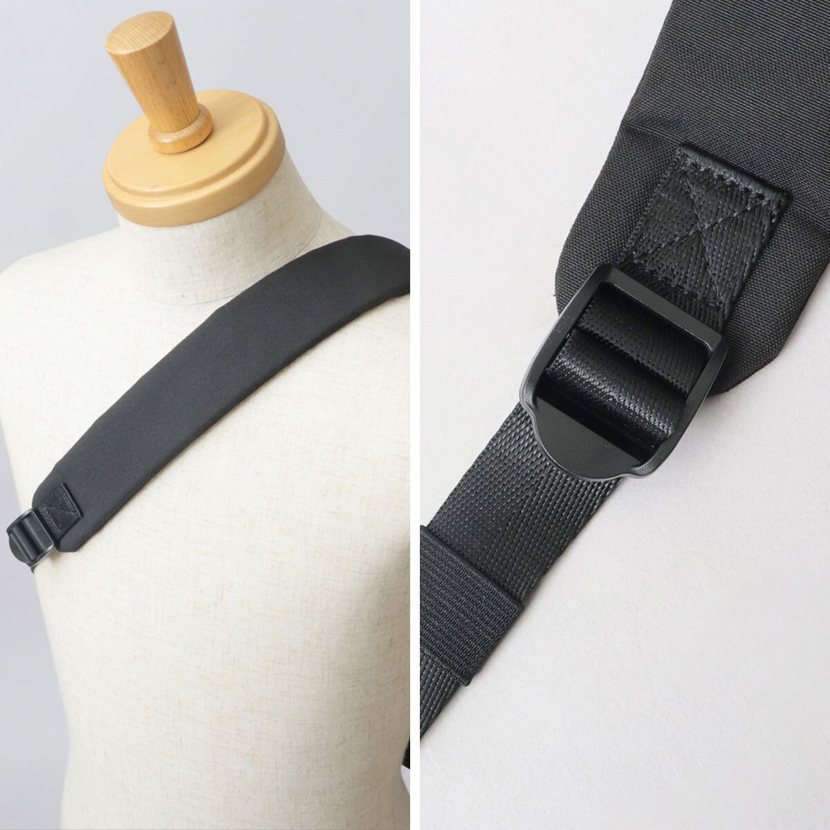 ショルダーベルトは、長さの調節が可能。幅広で背負いやすく、中にはしっかり厚みのあるクッション素材入り。バッグ両サイドにDカンを取り付けているので、ショルダーベルトを付け替えることが可能◎どちらの肩でも背負いやすい仕様。
