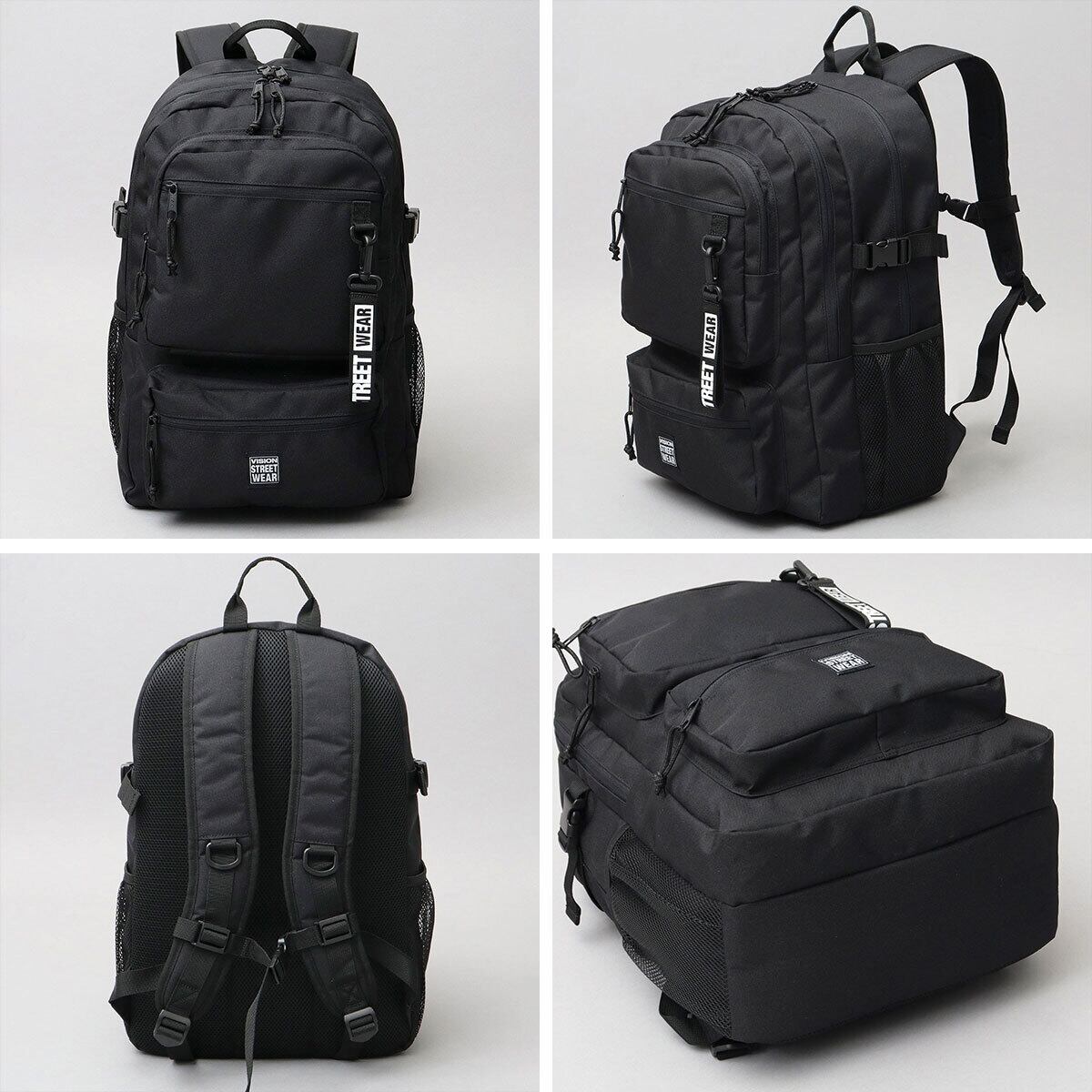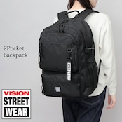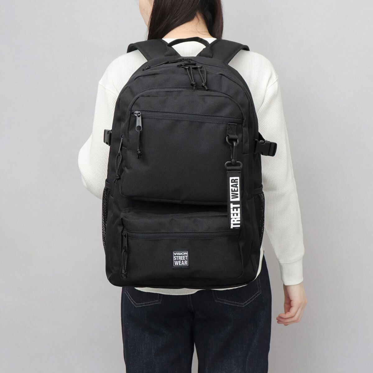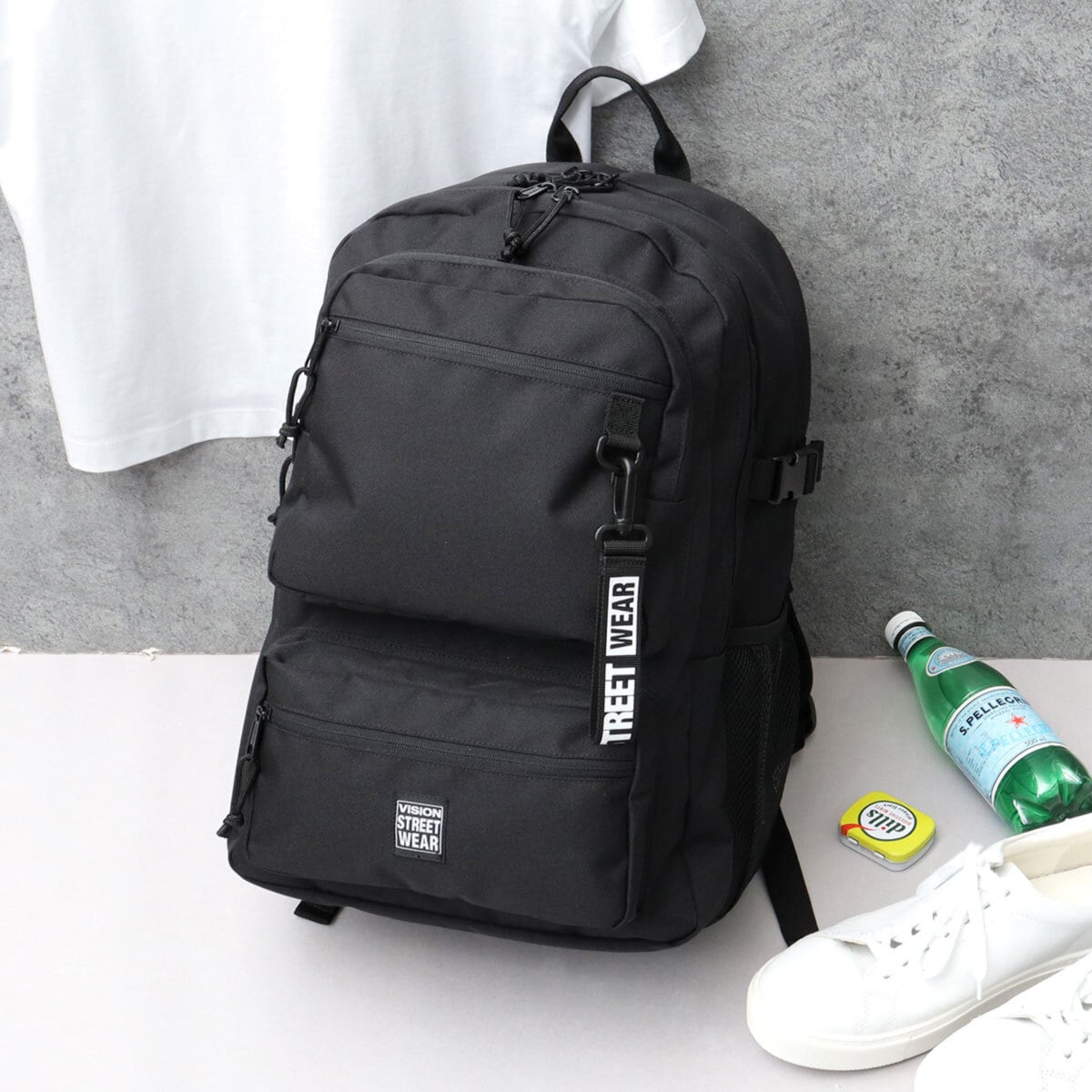 HBD-070 ヴィジョンストリートウェア リュック バックパック メンズ レディース 大容量 2層式 A4 B4 通学 通勤 学生 旅行 バッグ 黒 ブラック ストラップ付き シンプル ストリート おしゃれ かっこいい VISION STREET WEAR