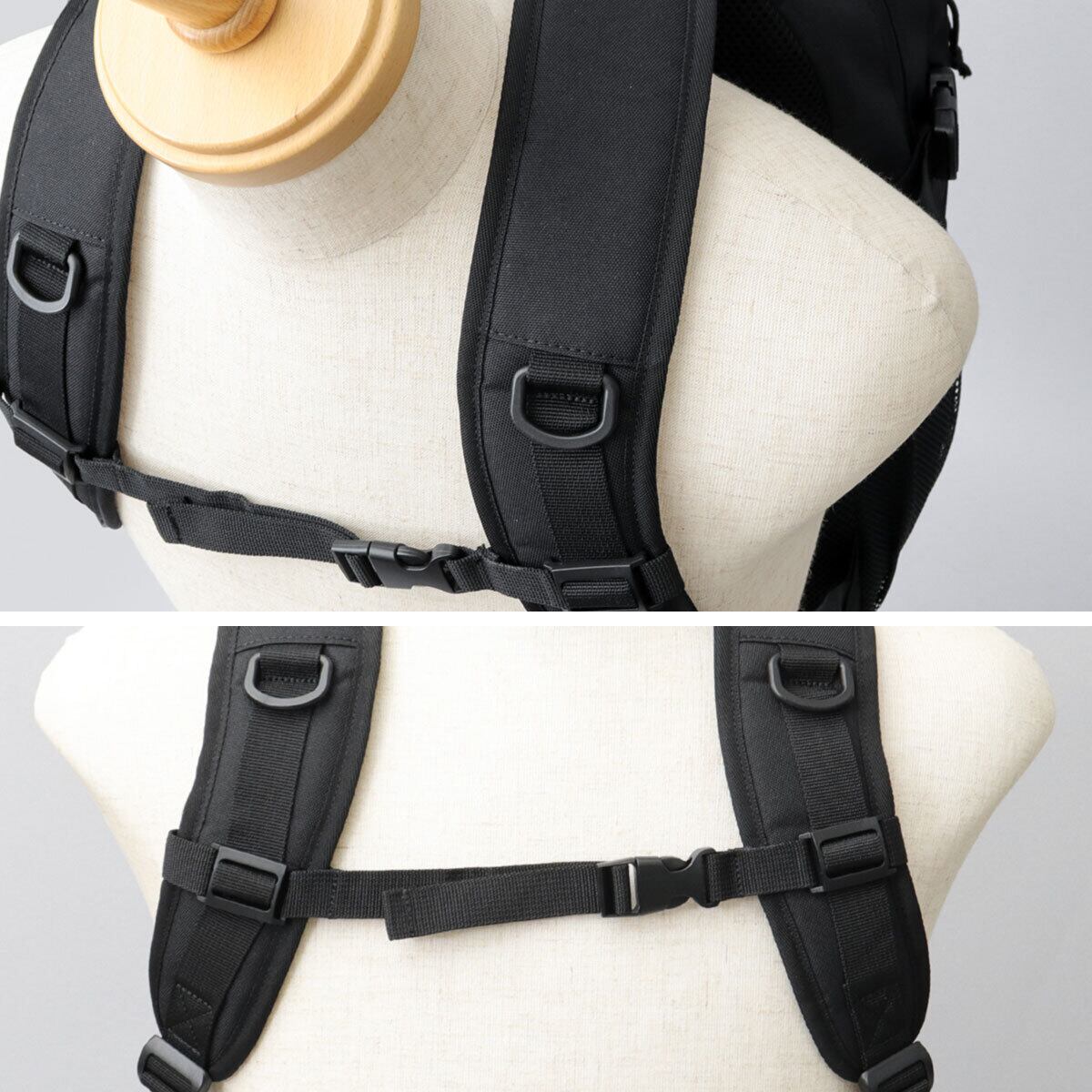 ショルダーベルトは幅広の設計で背負いやすく、肩への負担を軽減。上下に位置調節が可能なハーネスを完備しているので、しっかり固定できます。