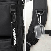 各ファスナーには、大きめのVISIONオリジナル引手を使用。外側ファスナーの引手には、ドローコードのジッパータブ付きで、引きやすく、スムーズに開閉が可能◎