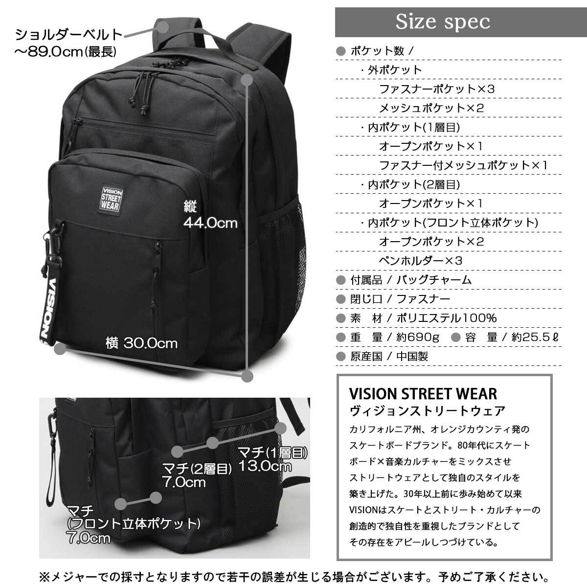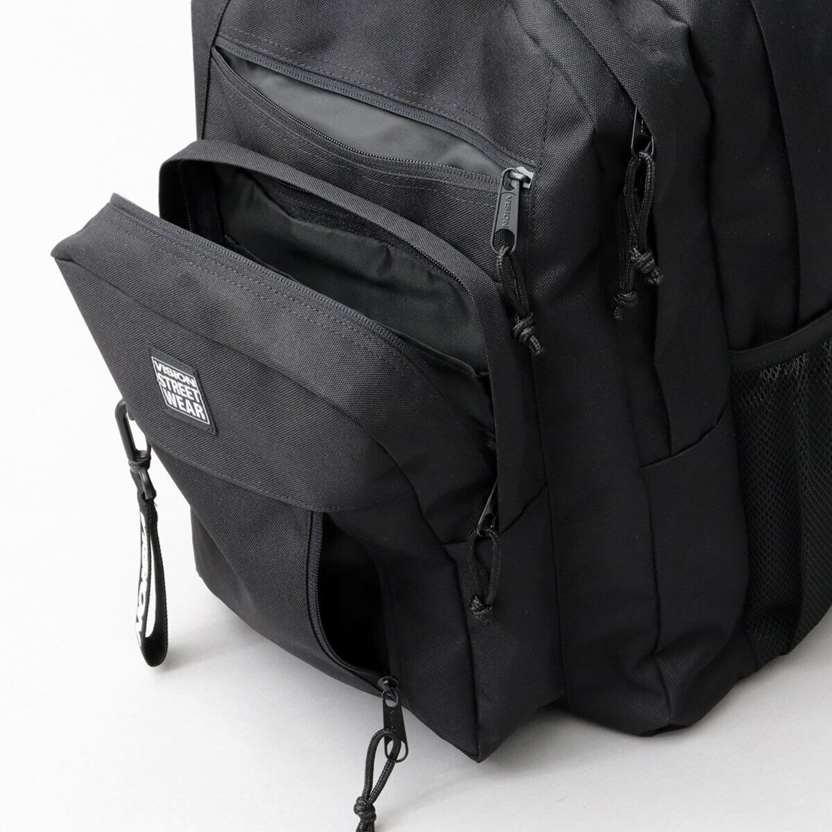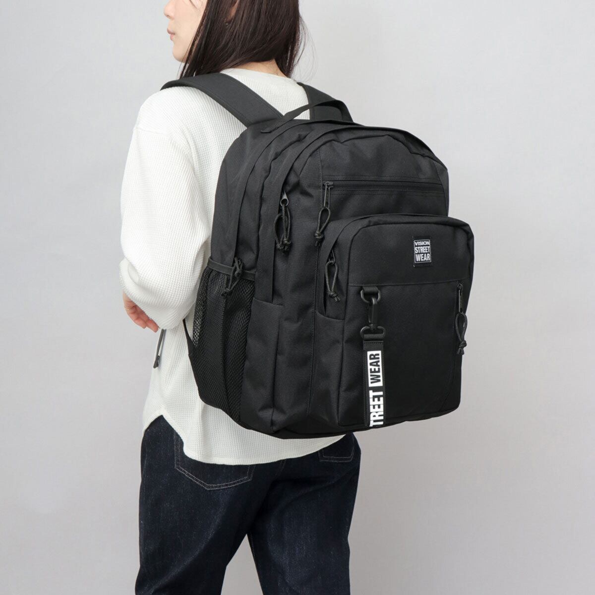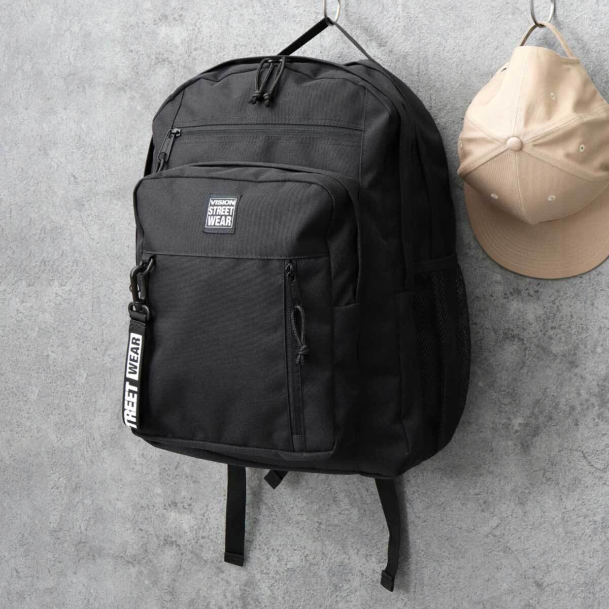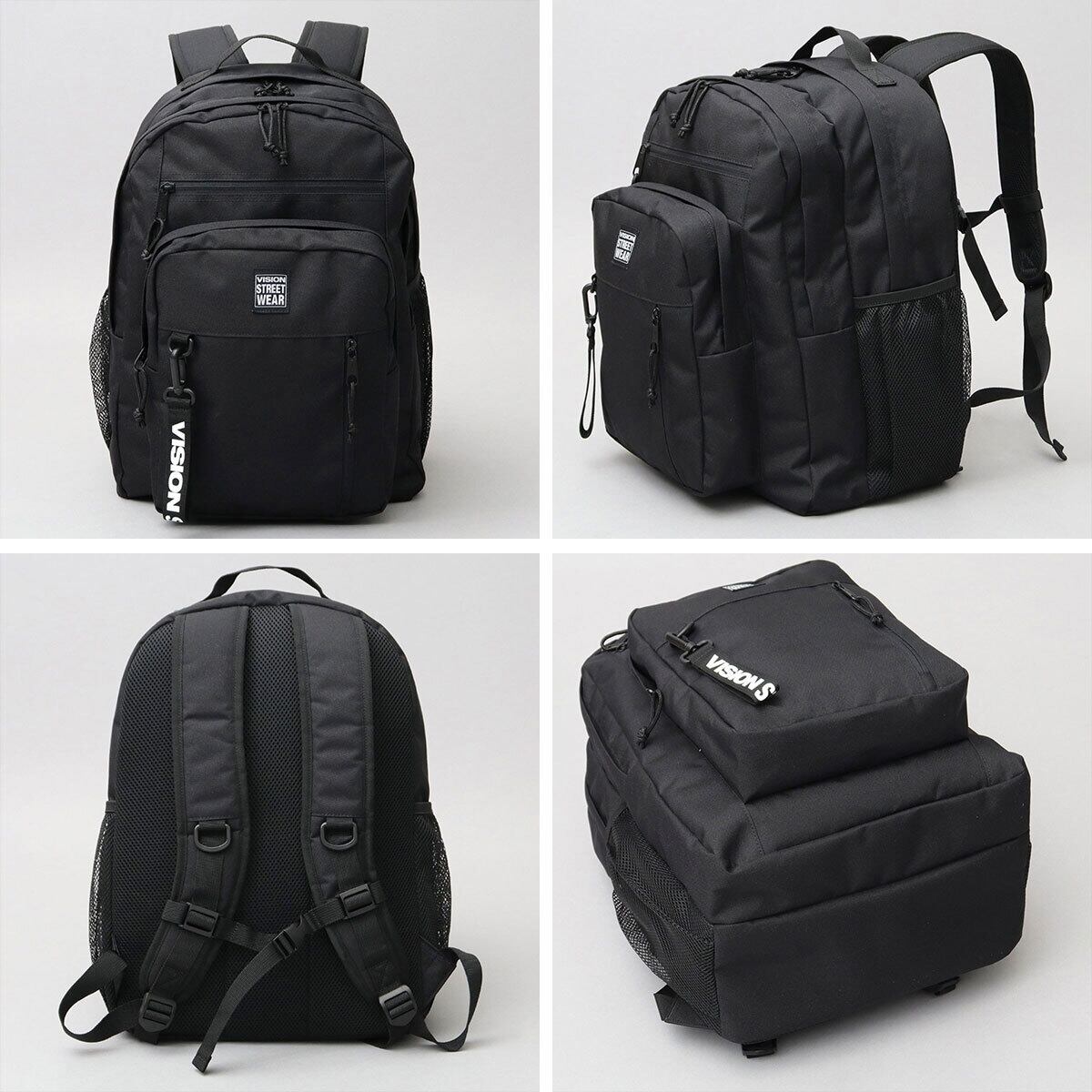 HBD-071 ヴィジョンストリートウェア リュック バックパック メンズ レディース 大容量 2層式 スクエア A4 B4 通学 通勤 学生 旅行 バッグ 黒 ブラック ストラップ付き シンプル ストリート おしゃれ VISION STREET WEAR