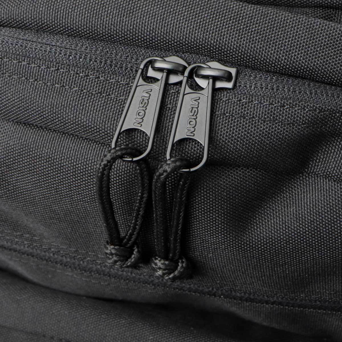 各ファスナーには、大きめのVISIONオリジナル引手を使用。外側ファスナーの引手には、ドローコードのジッパータブ付きで、引きやすく、スムーズに開閉が可能◎