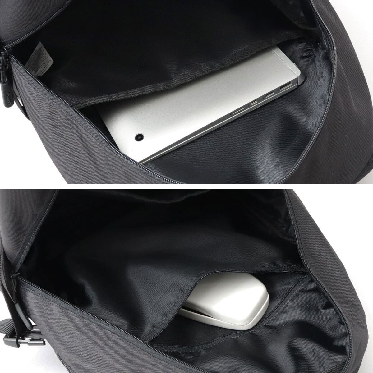 A4サイズはもちろん、B4サイズもぴったり収まるサイズ感のメイン収納スペース。着替えや靴など、1泊の荷物もしっかり収まる大容量サイズ。内側には、ノートPCやタブレットの収納に最適なクッションポケットに加え、仕分けに便利なファスナーポケットを完備。