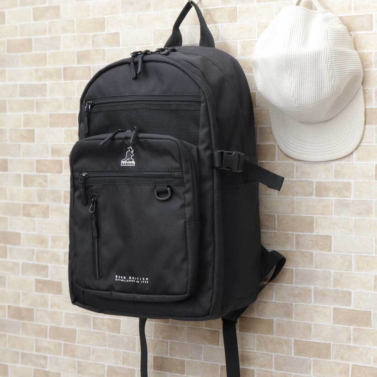 SNY-056 KANGOL カンゴール リュック メンズ レディース 大容量 2層式 バックパック A4 B4 PC収納 通学 通勤 高校生 大学生 部活 スポーツ バッグ 黒 ブラック シンプル ロゴ カジュアル ストリート おしゃれ