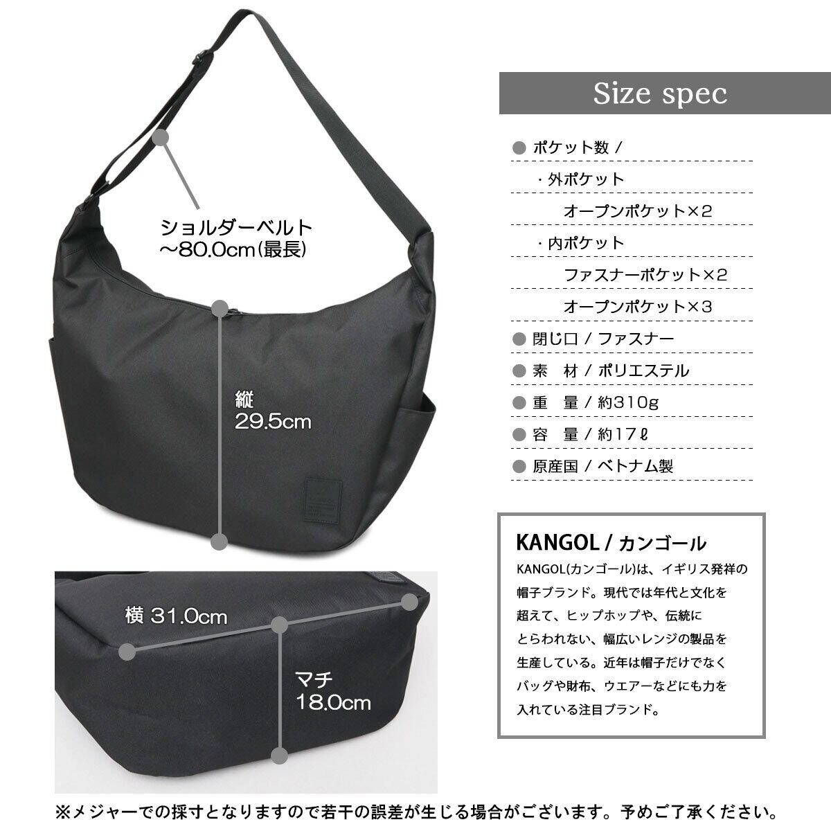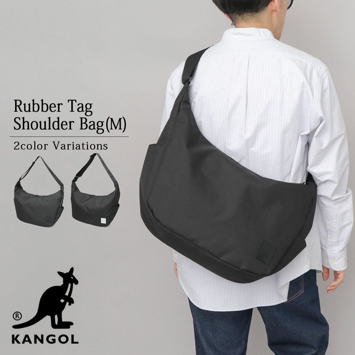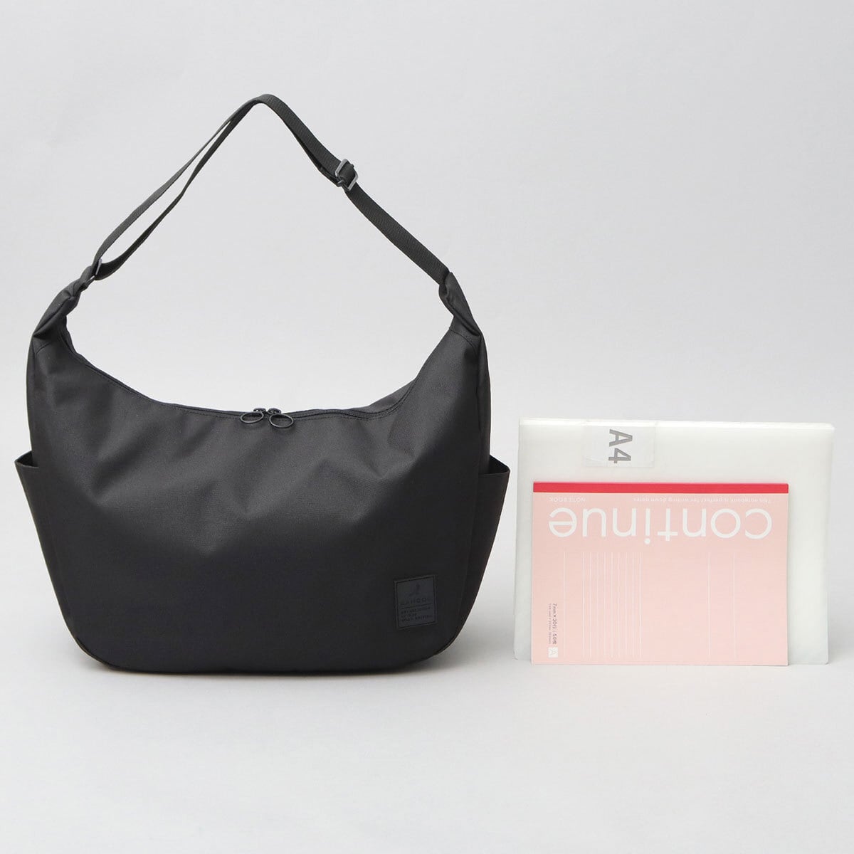 SNY-059 KANGOL カンゴール ショルダーバッグ メンズ レディース 斜めがけ 肩掛け バッグ A4 通勤 通学 ラバータグ ロゴ 舟形 バナナ型 黒 ブラック シンプル 無地 ユニセックス カジュアル おしゃれ