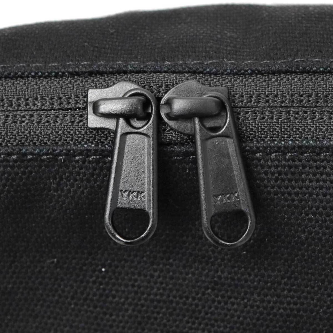 外側ファスナーは、安心のYKK製。マットブラックの落ち着いた雰囲気がボディにしっかり馴染んだ作りに。