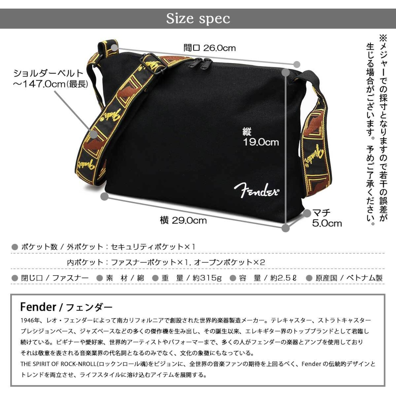 SNY-080 Fender フェンダー ショルダーバッグ メンズ レディース キャンバス A5 斜めがけ 肩掛け バッグ モノグラムストラップ シンプル 黒 ブラック ロゴ カジュアル かっこいい おしゃれ