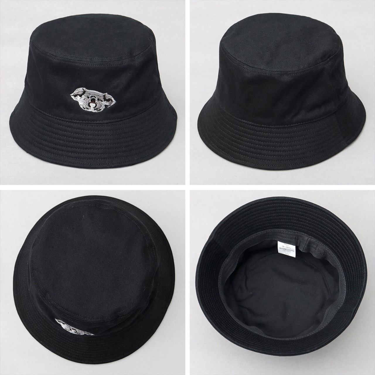 CNT-026 バケットハット メンズ レディース コアラ刺繍 帽子 バケハ アニマル刺繍 動物モチーフ コットンツイル 黒 ブラック 推し活 おしゃれ カジュアル ユニセックス