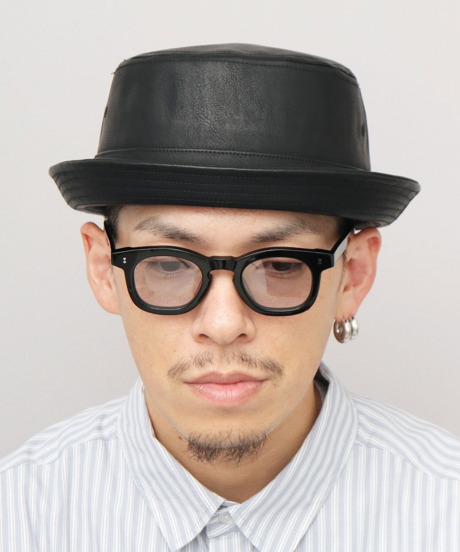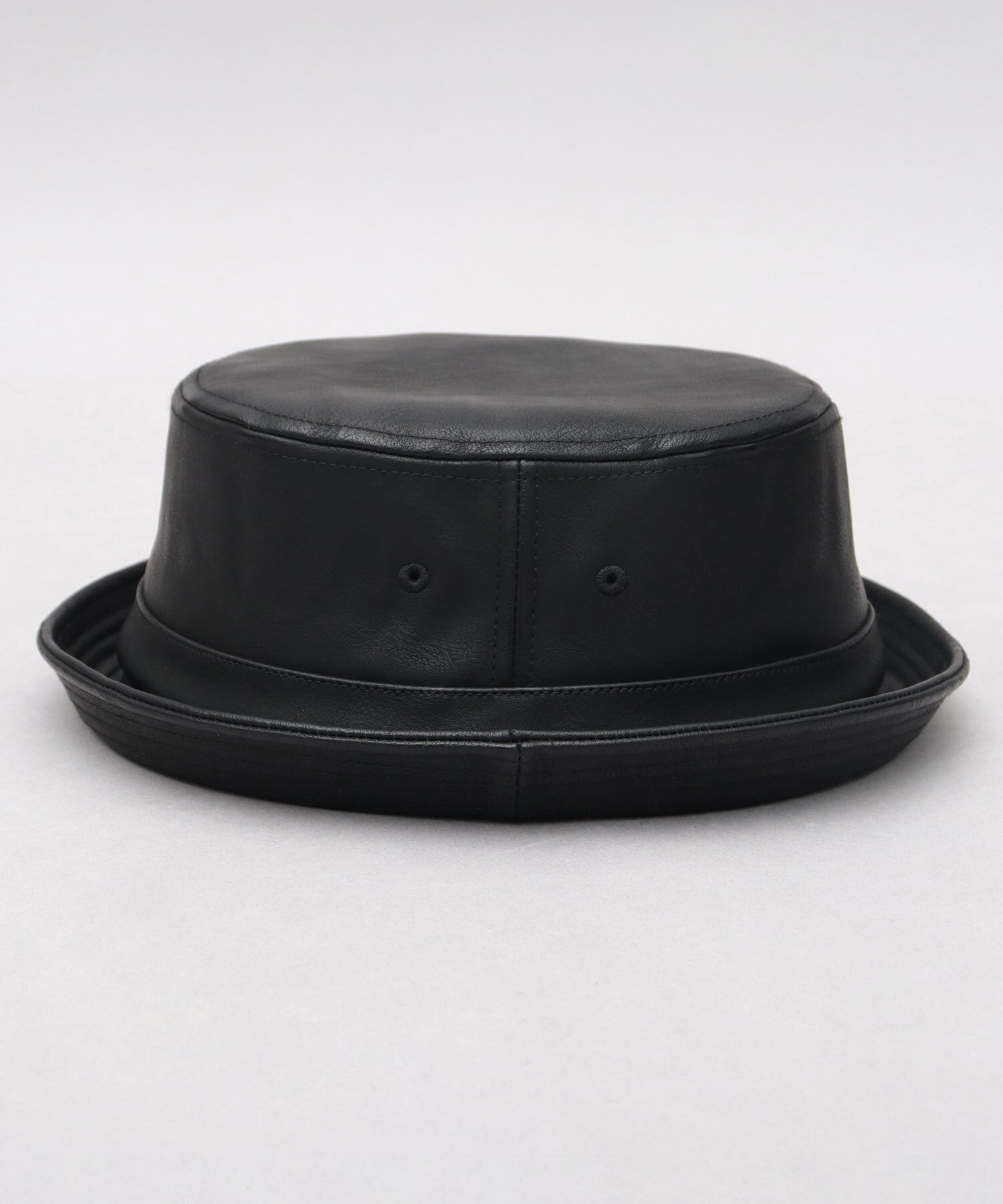 イギリスの料理「ポークパイ」に見た目が似ていることからつけられた名前のポークパイハット。円筒形でトップが平らなクラウンに、お皿の口縁のように上向きになったブリムを合わせたシルエットが特徴。程よい艶感のレザー調素材を使用しているので、シックな大人の雰囲気を演出してくれます。中折れハットに比べカジュアルに合わせやすいので、クラシカルなキレイめスタイルから、カジュアル全般まで、幅広いスタイルにマッチしてくれます。シンプルなスタイリングにも、サッと被るだけで、大人なこなれ感を演出してくれる便利アイテム。