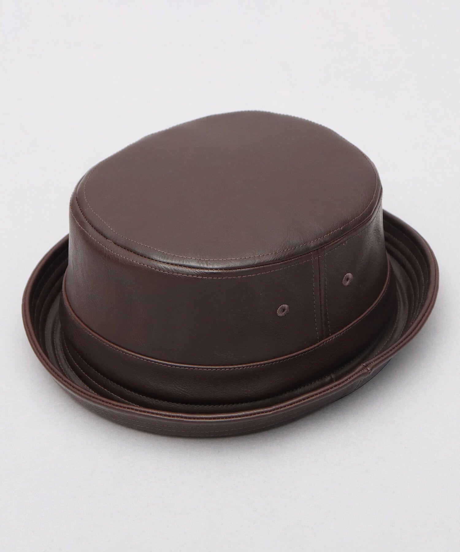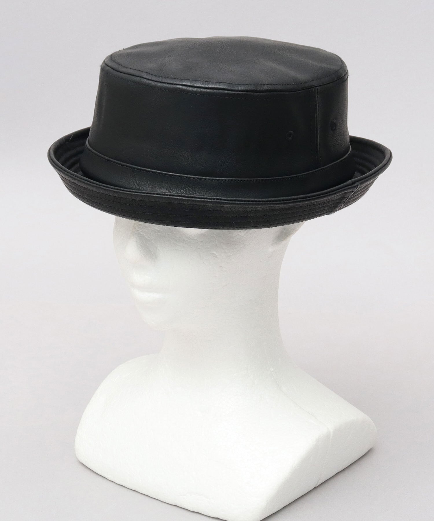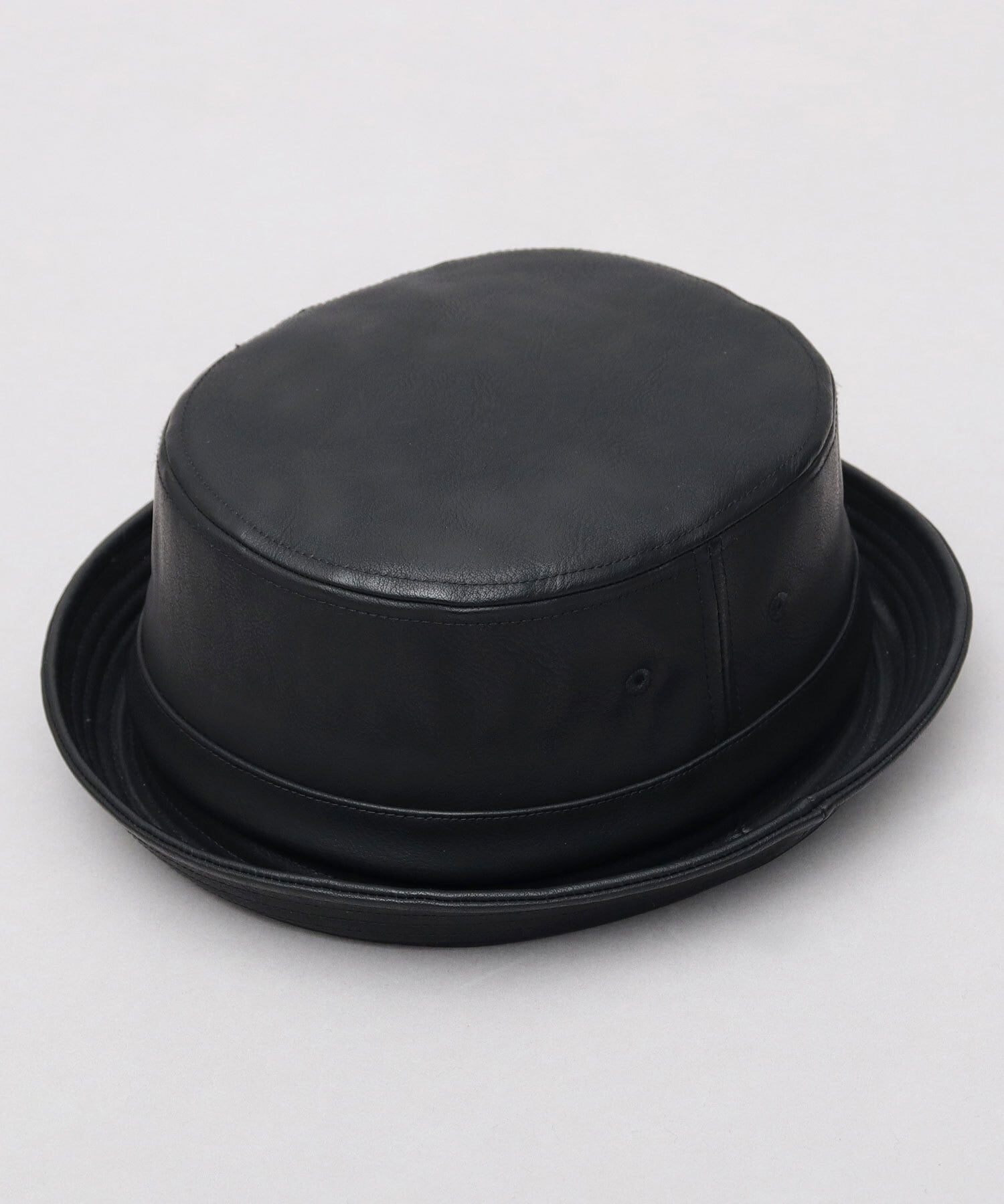 ◆シックな大人感を演出!レザー調ポークパイハット◆
