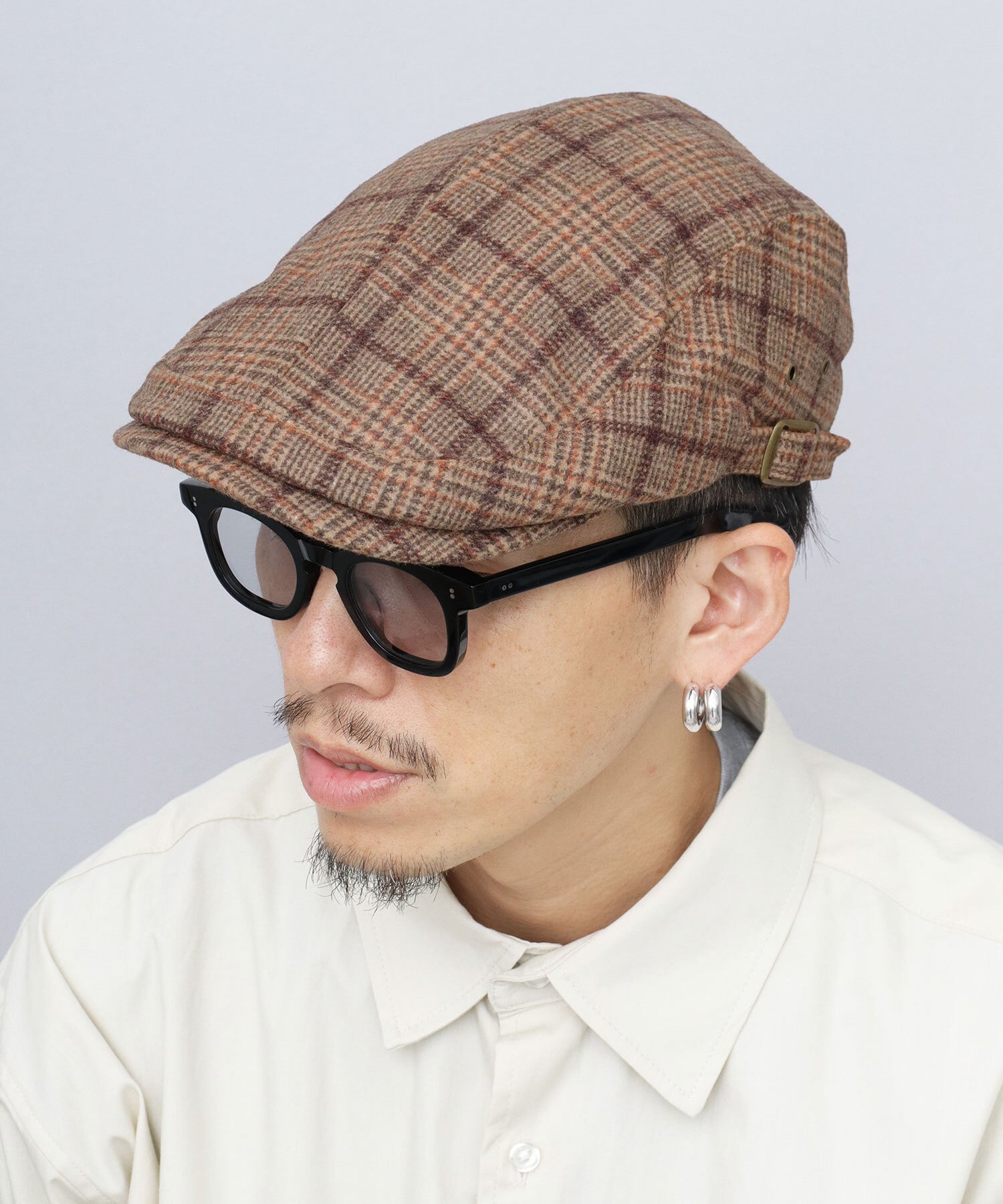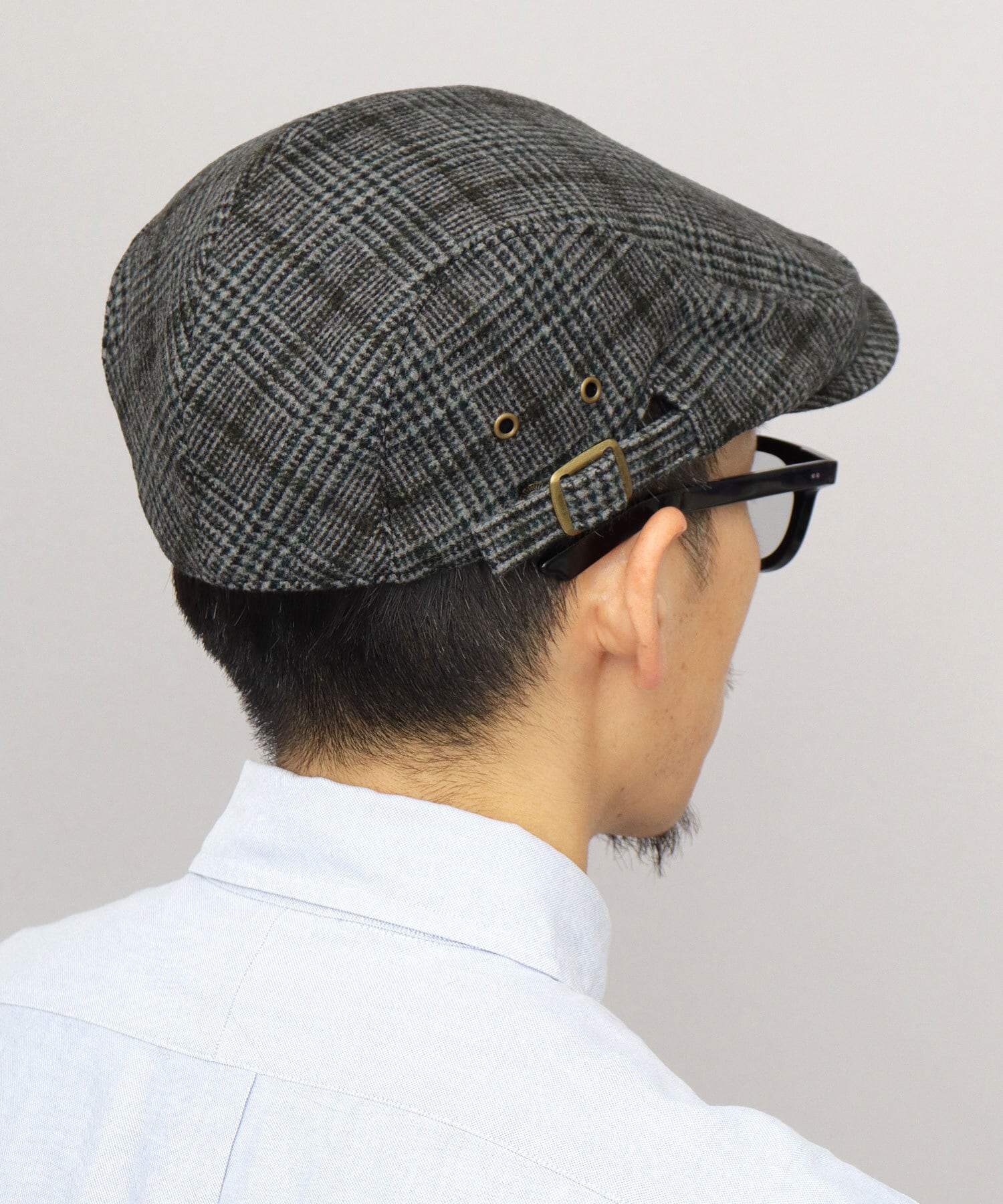 ハンチングの中でも、最も定番的なデザインのモナコハンチング。トップが低めで程よく長さのあるツバの、誰でも被りやすいシルエット。暖かみのある印象のツイードチェック柄生地がシーズンムードをグッと高めてくれるアイテム。サッと被るだけで、大人のこなれ感を演出してくれます。両サイドに配置された共地のアジャスターベルトで、頭周りのフィット感の調節が可能。意外にもカジュアル全般合わせやすい便利アイテム!