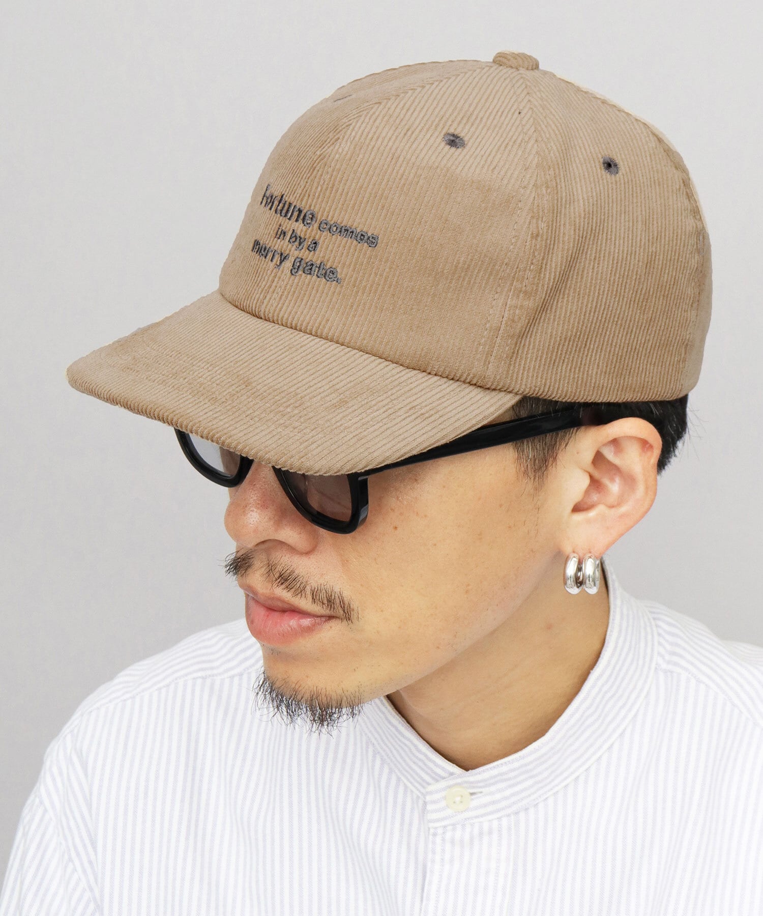 柔らかな芯地の平ツバに、ドローコードのアジャスターを合わせたアクティブな雰囲気の6パネルキャップ。フロントの『Fortune comes in by a merry gate.(笑う門には福来る)』のデザイン刺繍が1日をハッピーに過ごせる手助けになりそう◎
