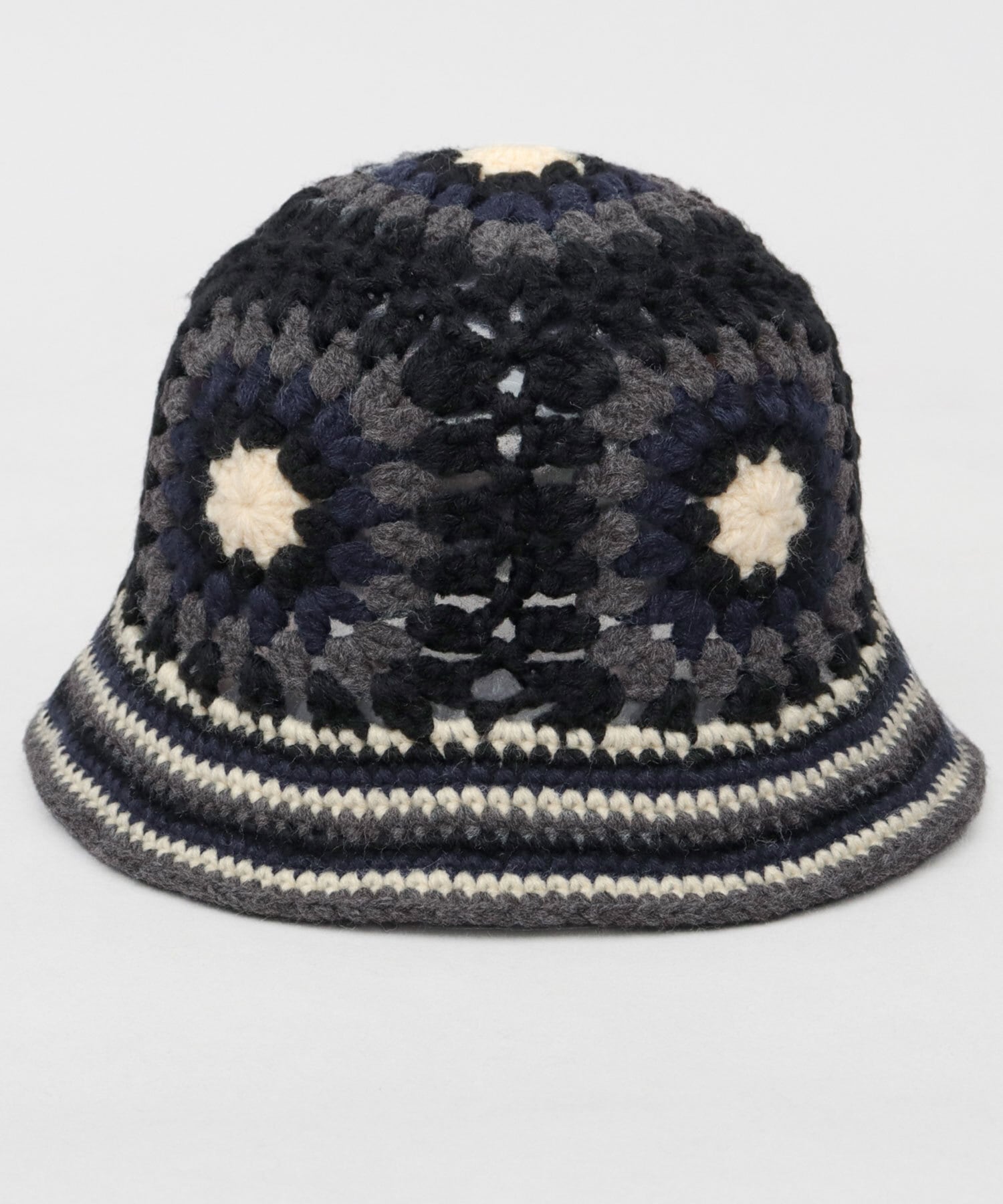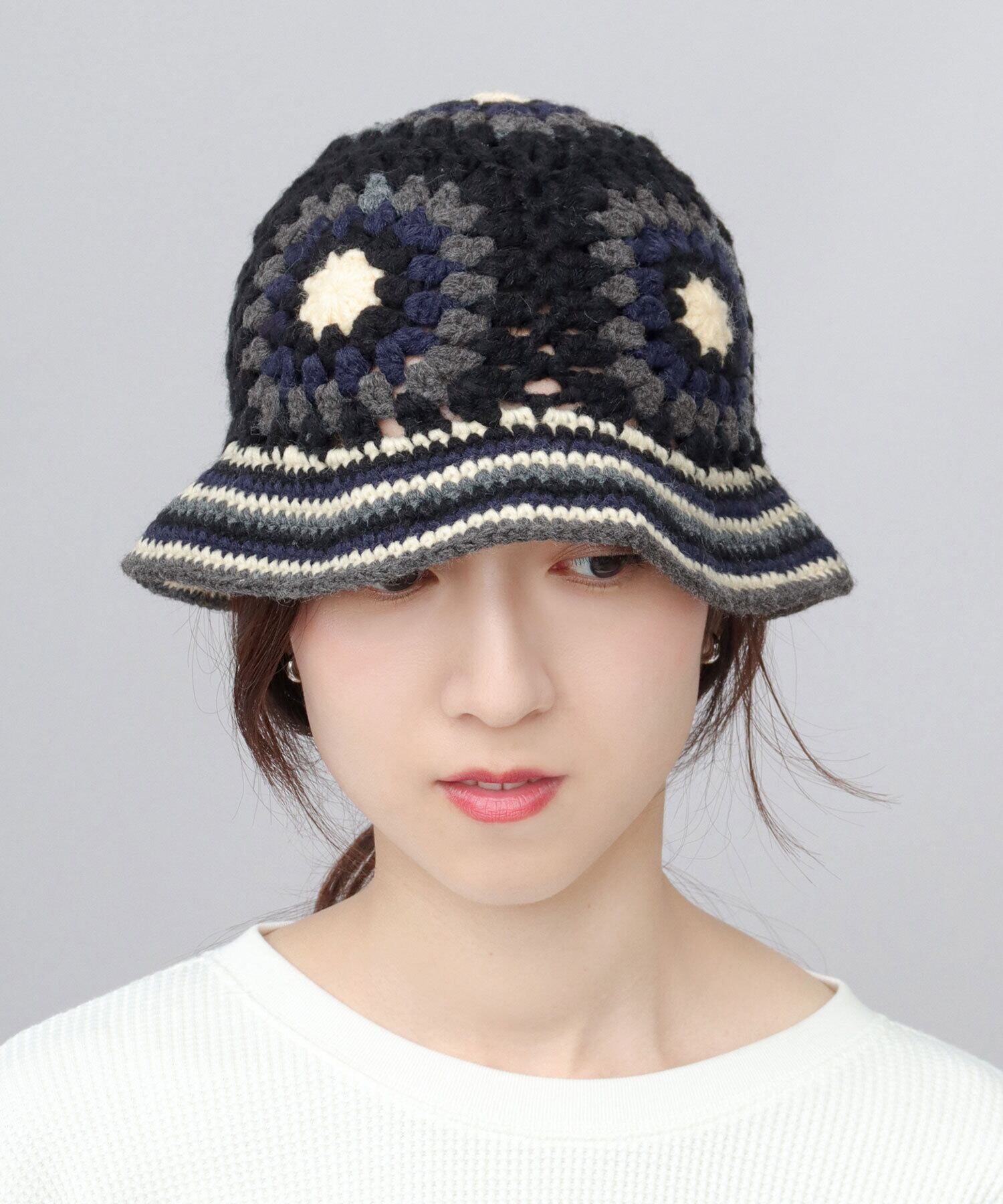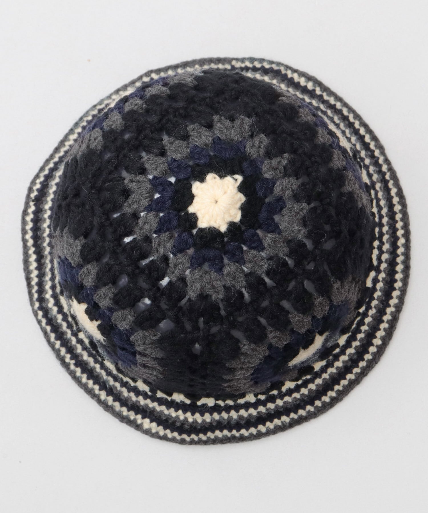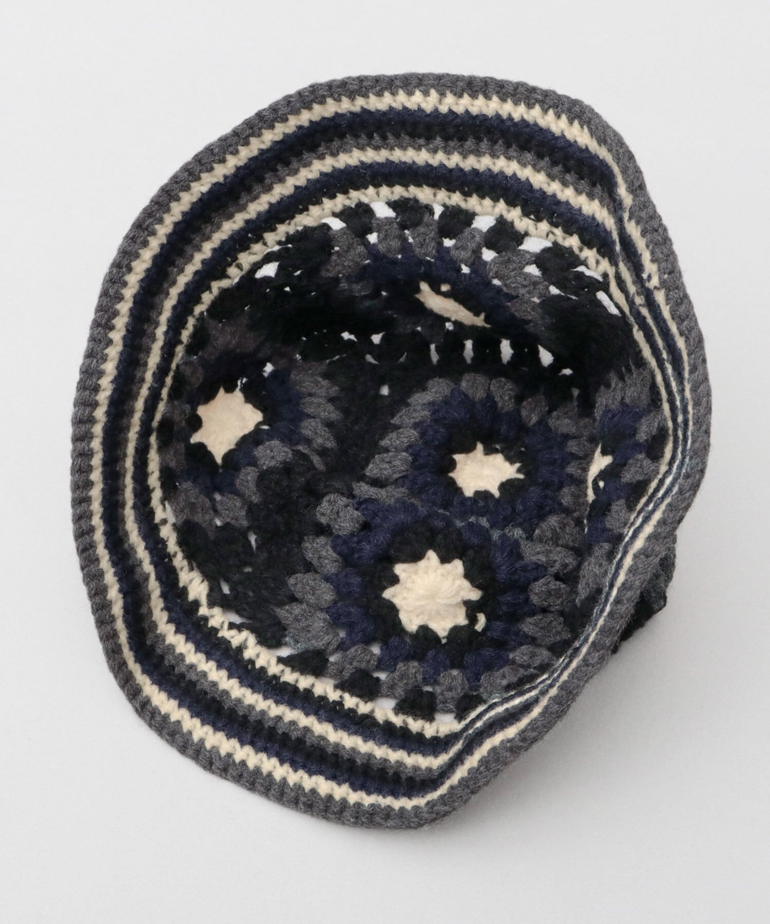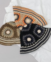 温もりを感じさせる、手編みの透かし編みニットが魅力のニットクロシェハット。静寂・大地・太陽をイメージした色展開と、大振りな編み柄がコーディネートにアクセントをプラス。