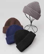 ◆極太糸を使用した抜群の存在感!ワイドロールニットキャップ◆