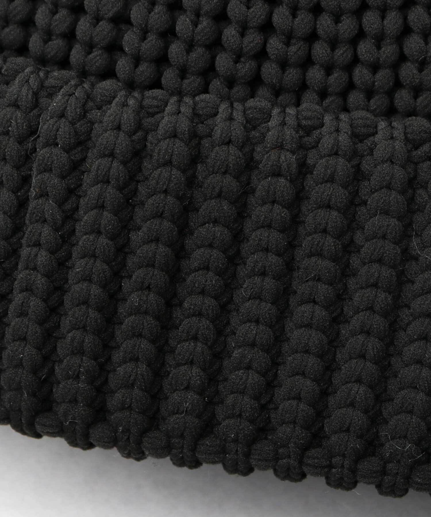 極太糸を使用した畔編み生地がボリューム感のあるデザインがポイント。重量感があるように見えて、非常に軽く、温かみのある不思議な風合い。