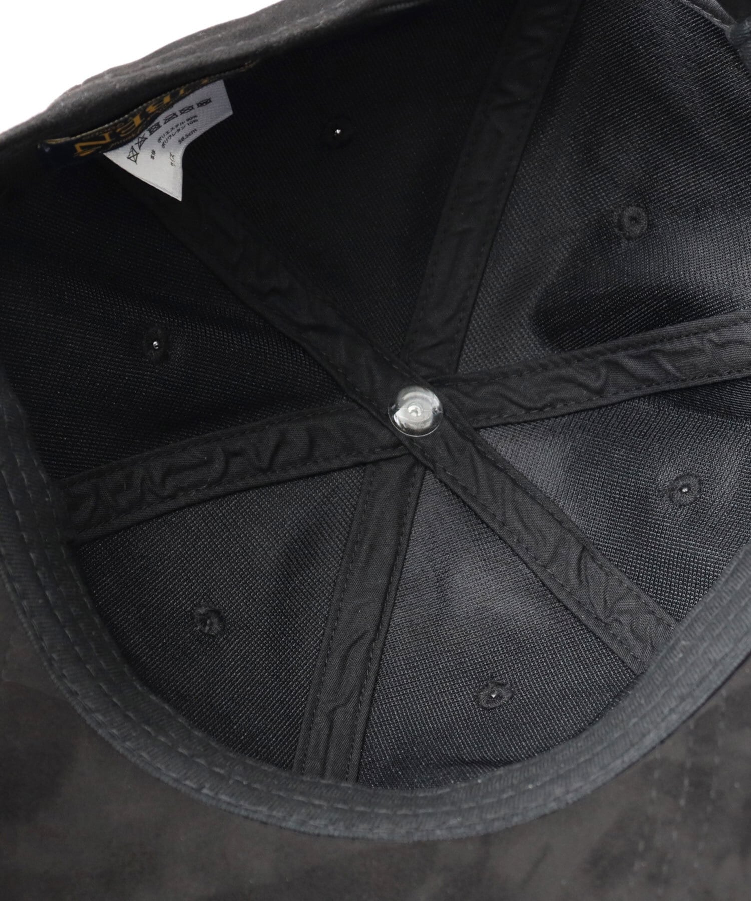 定番の6パネルのカーブバイザーキャップ。無駄な装飾を一切省いた、しっとり落ち着きのある大人の雰囲気。