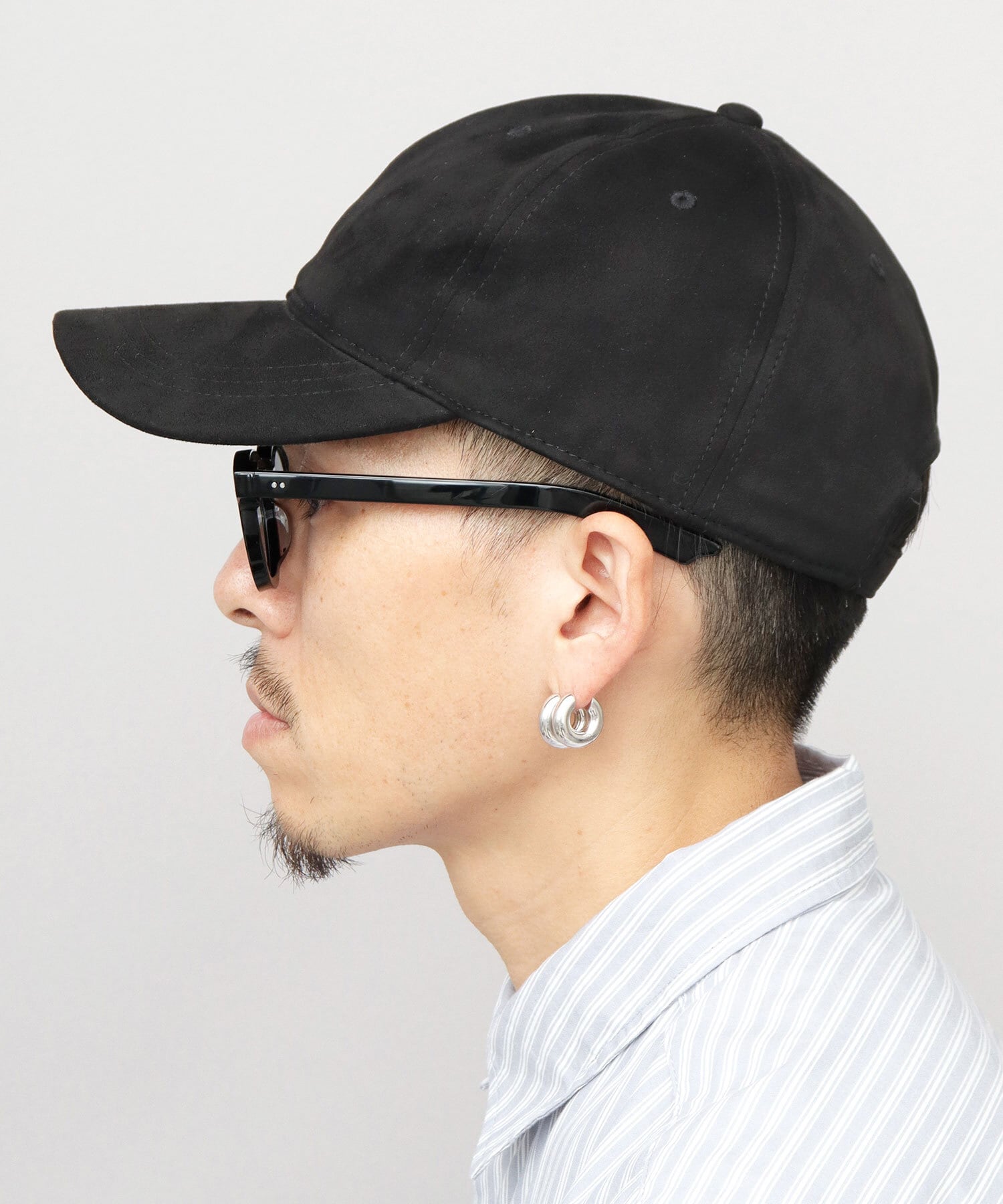 無駄な装飾を一切省いた、シンプルデザインのカーブバイザーキャップ。素材にマットな質感のスエード調生地を使用した、しっとりとした大人の雰囲気が漂うアイテム。裏地にメッシュ生地を使用しているので、帽内の熱だまりを防ぎ、長時間の着用もストレスフリーに。やや長めのツバと程良く深めの被りで、誰でもツバが顔を覆うような雰囲気で被れる深被りシルエット。シンプルなスタイリングにも、サッと被るだけで、大人のこなれ感を演出してくれる、お洒落さんマストアイテム。
