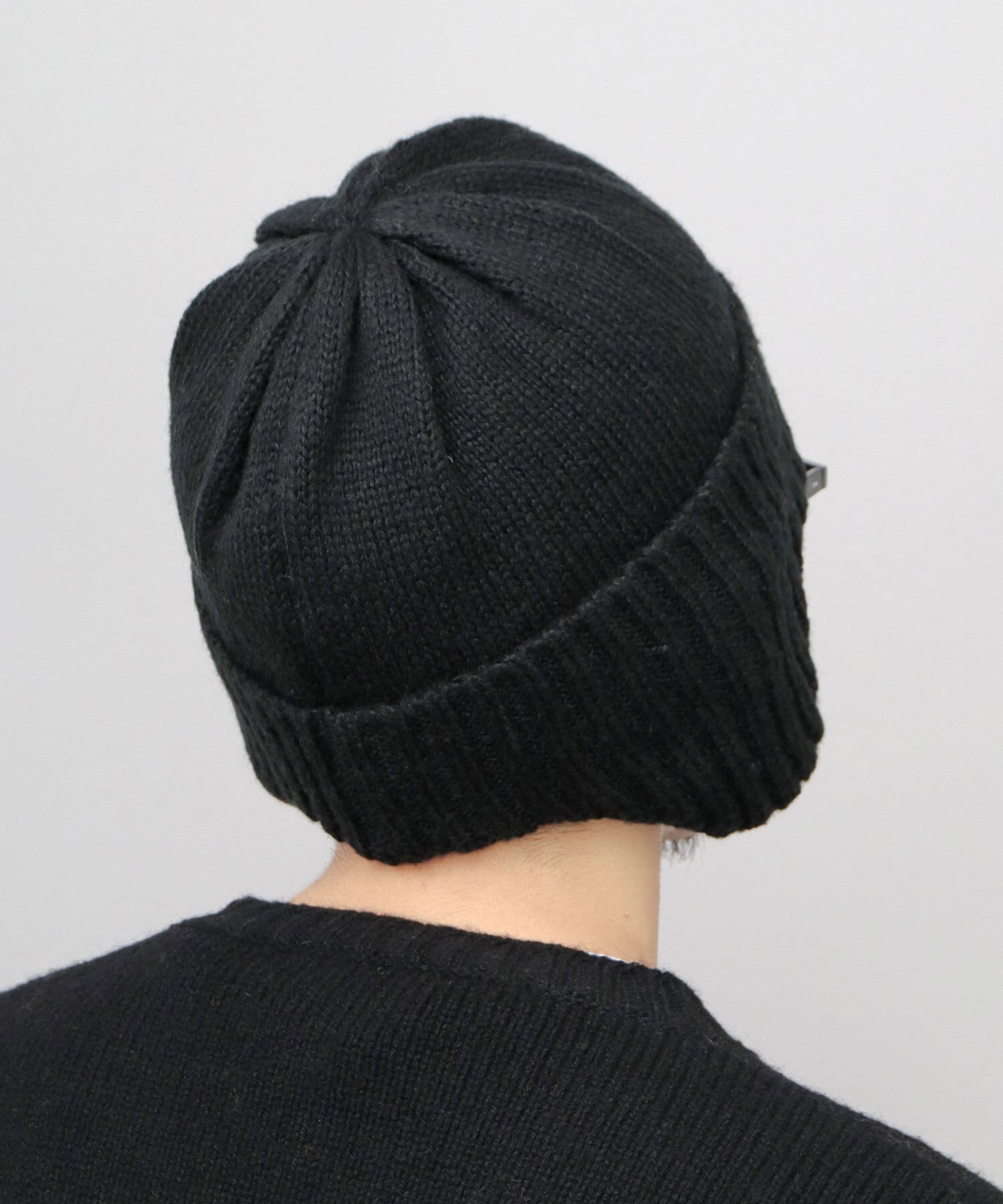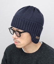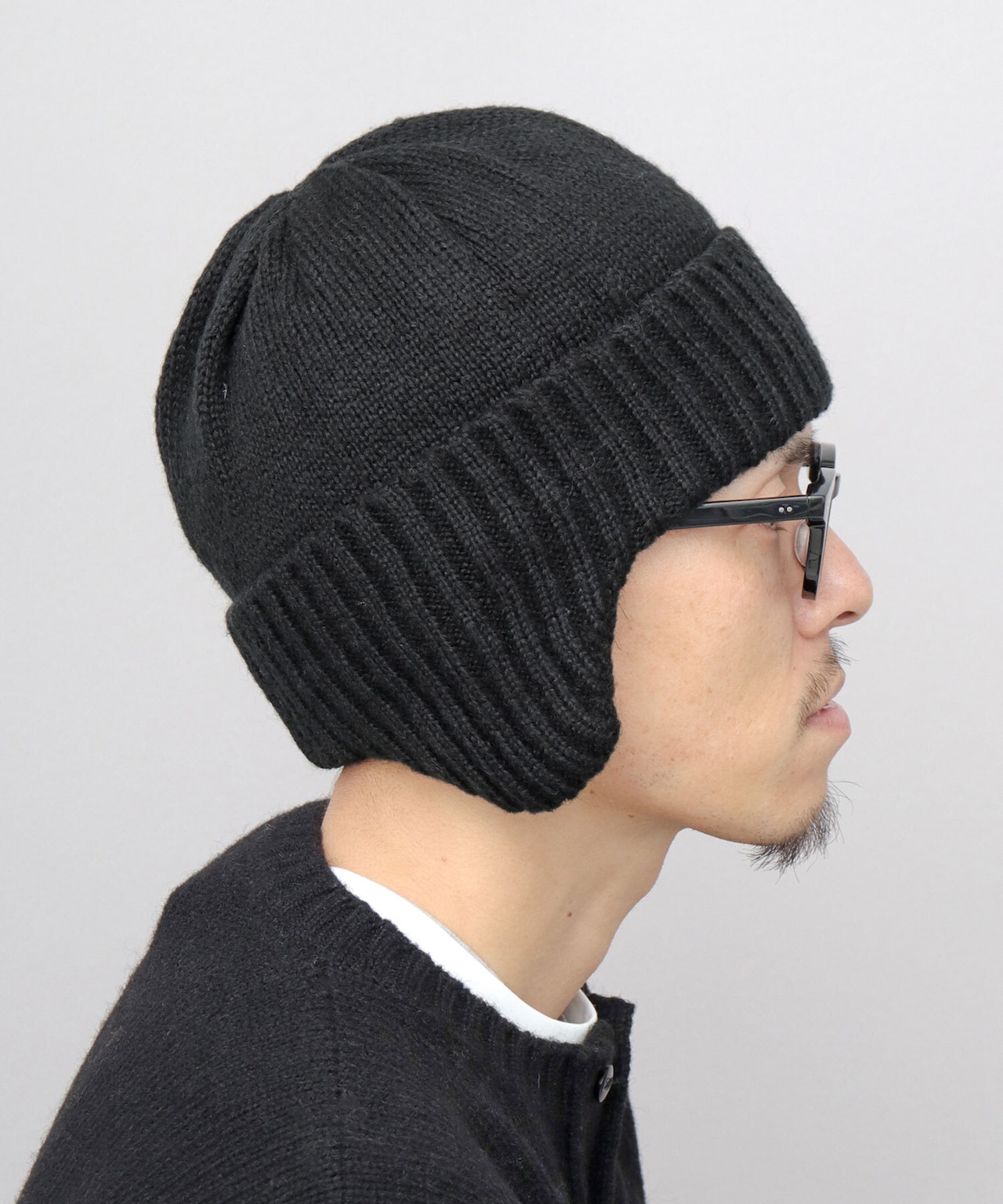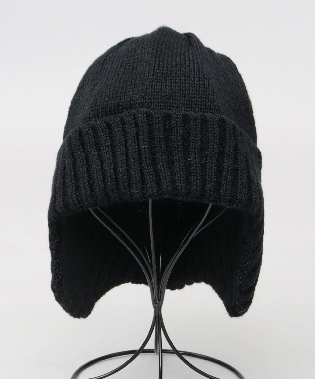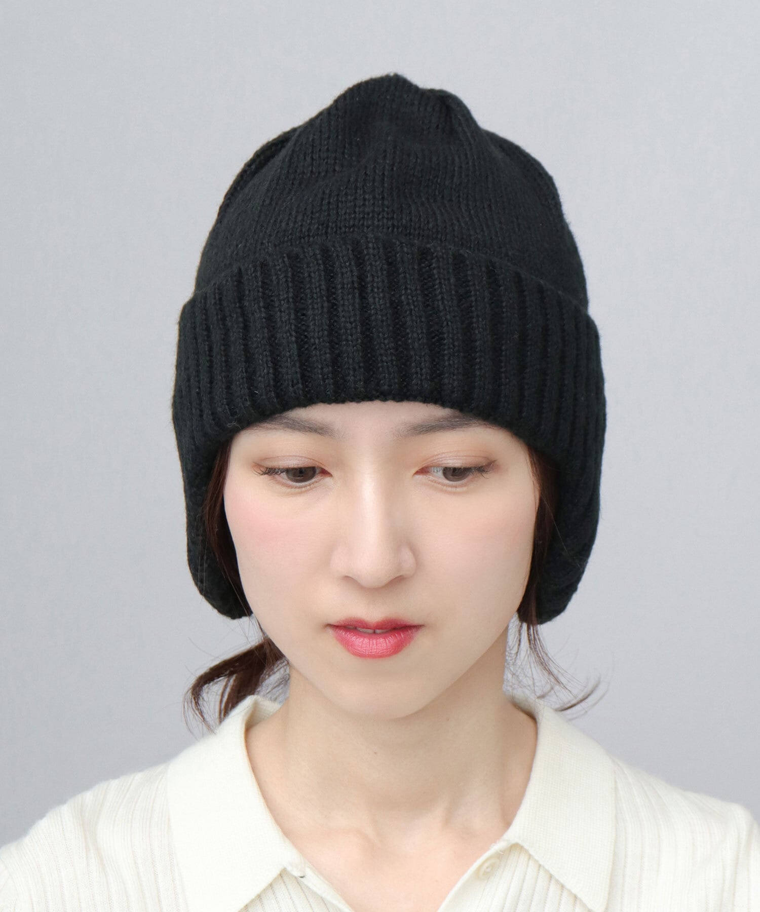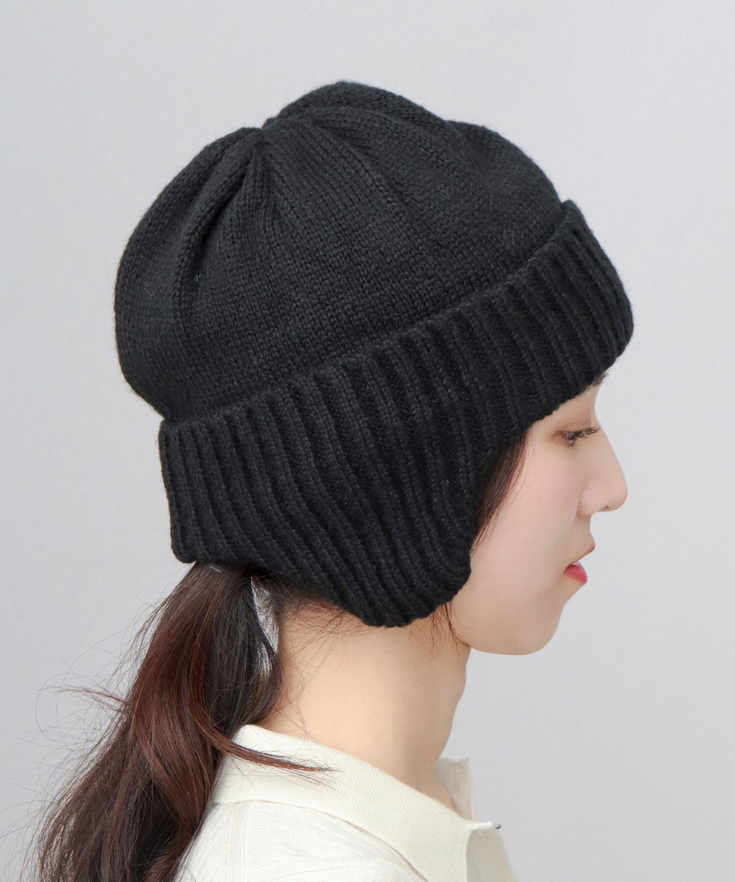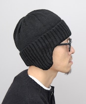 ミドルゲージのニット生地を二重仕様にした耳当てで、耳元を冷たい風や寒さからしっかり防寒。左右の耳当ては、着用した際にやや後方に位置するように配置。
