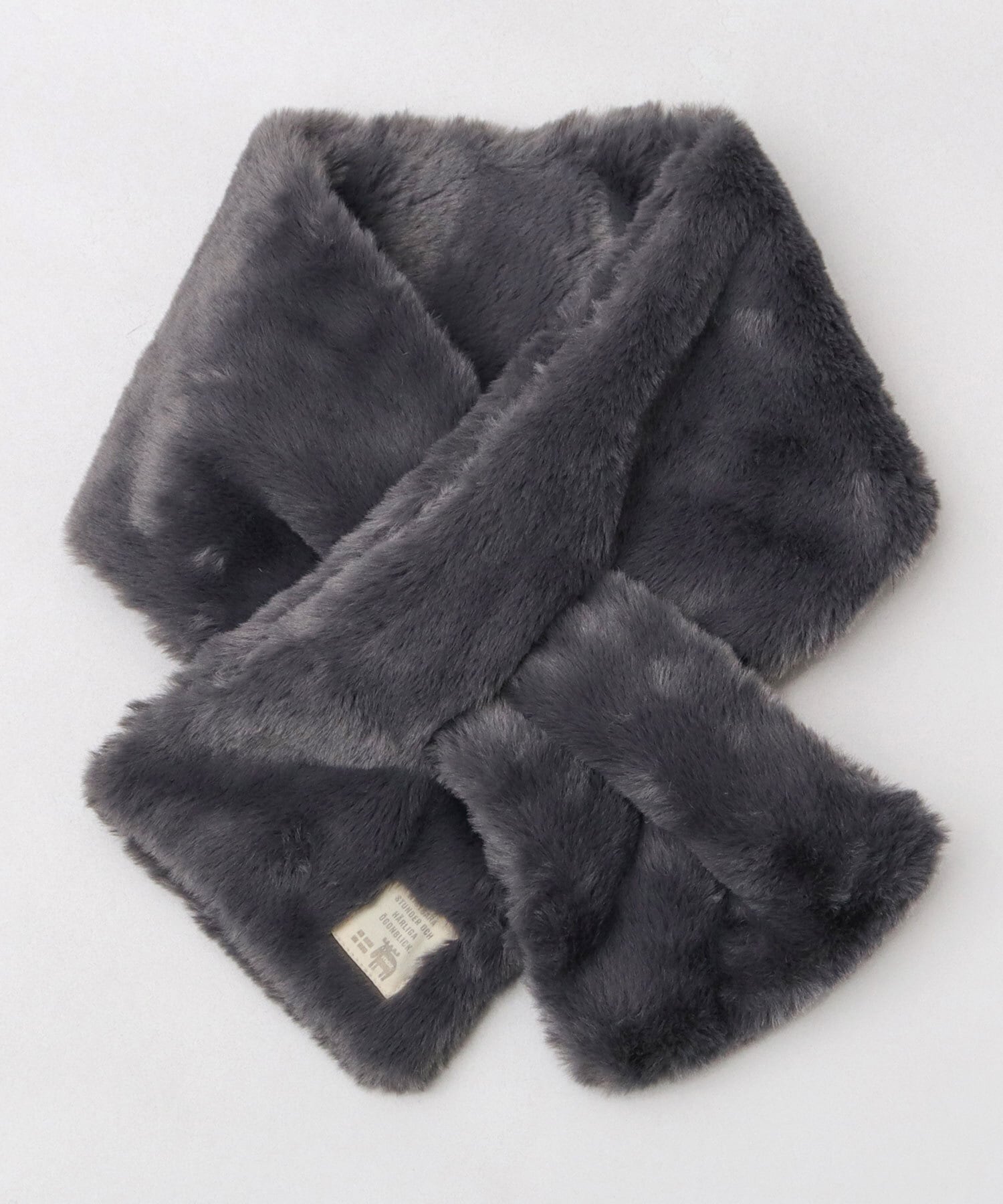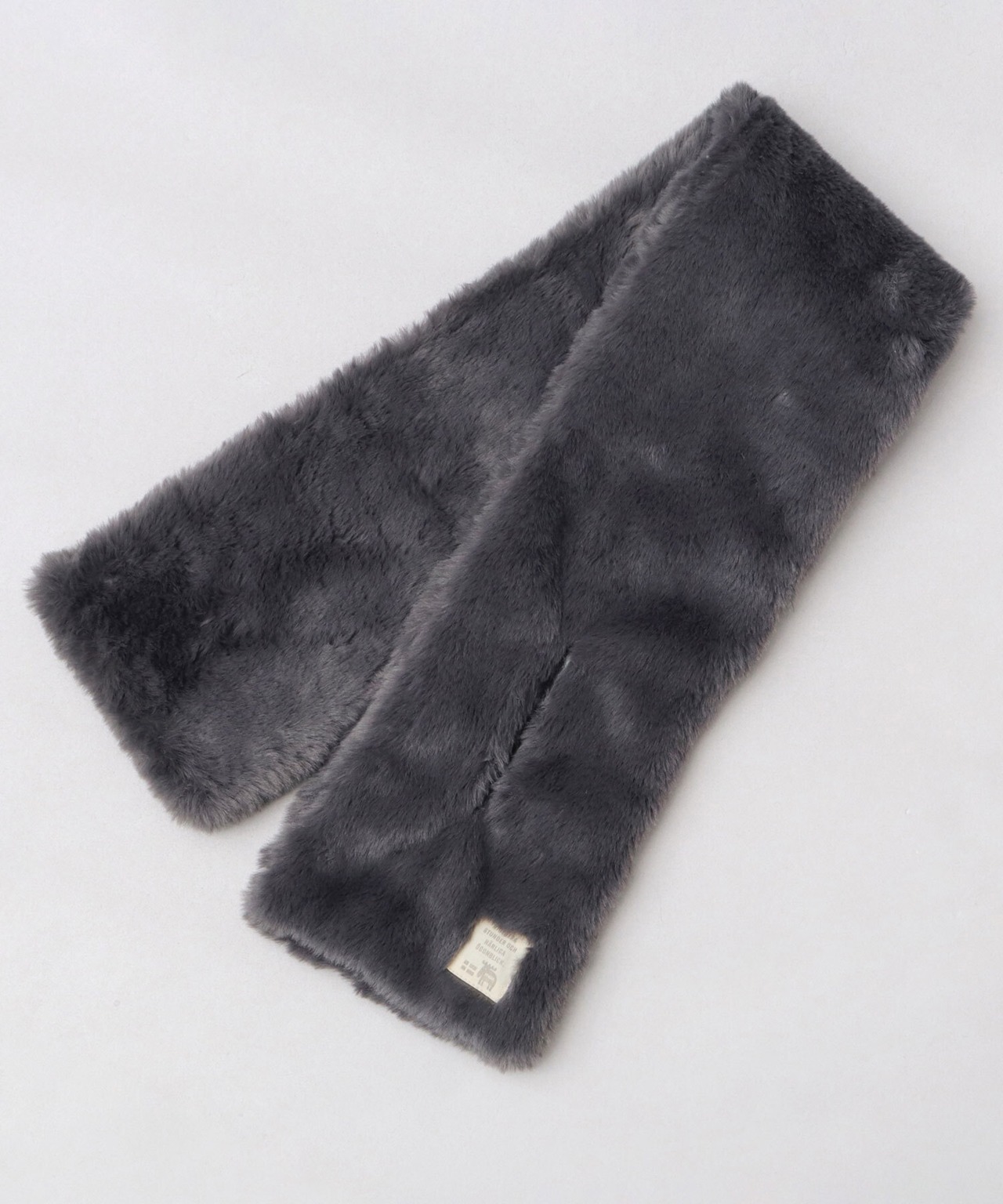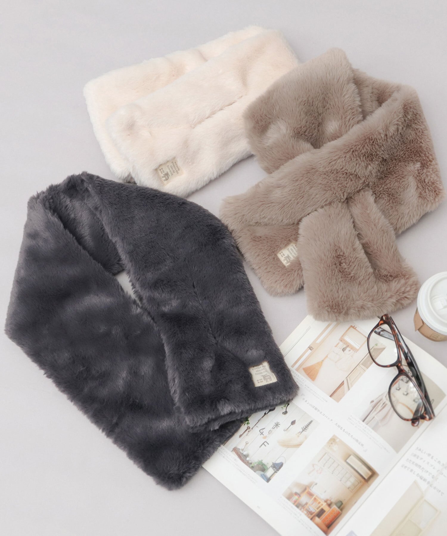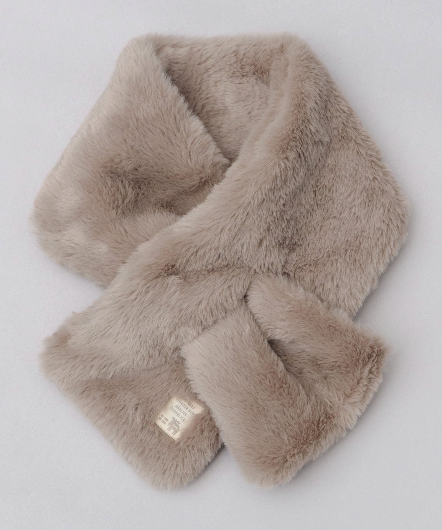 秋冬らしいふんわり滑らかなファー素地を使用した差し込み式マフラー(ティペット)。ブランドアイコンであるエルク(ヘラジカ)のオリジナルタグが目を惹くワンポイントに。