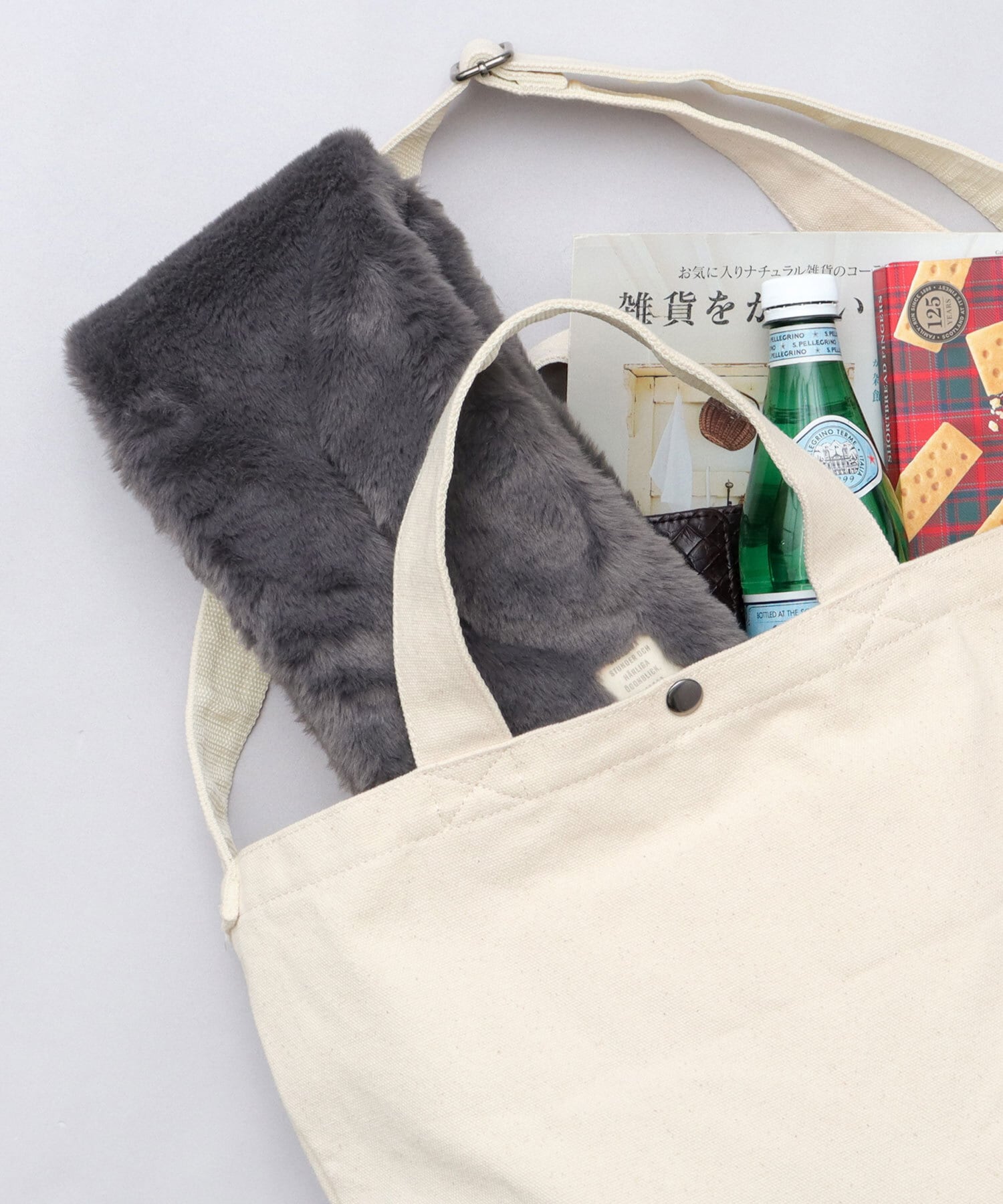 生地には、滑らかな肌触りと上品な光沢が特徴のファーを使用。表地、裏地の両面ファー仕様で、柔らかく温もりのある肌触りで、心地よい暖かさをキープ。