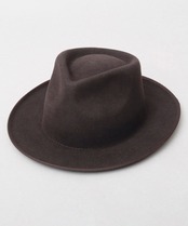 フロントから後ろに向かって低くなっていく、ティアドロップ型のクラシカルな印象のクラウンがポイントの中折れハット。