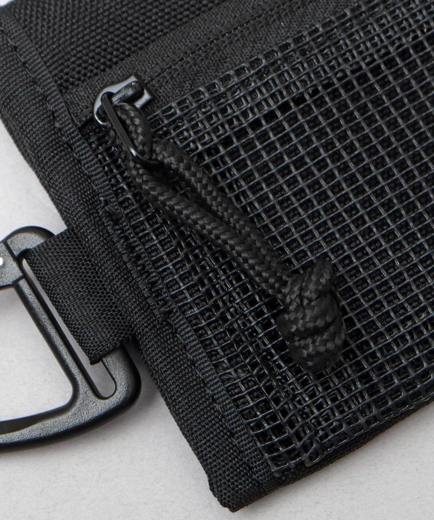 背面部分には、小銭入れを配置。視認性の良いメッシュポケットになっているので、中身が見やすく、小銭の取り出しの際の煩わしさを軽減。ファスナー引手には、ドローコードのジッパータブ付きでスムーズに開閉が可能。