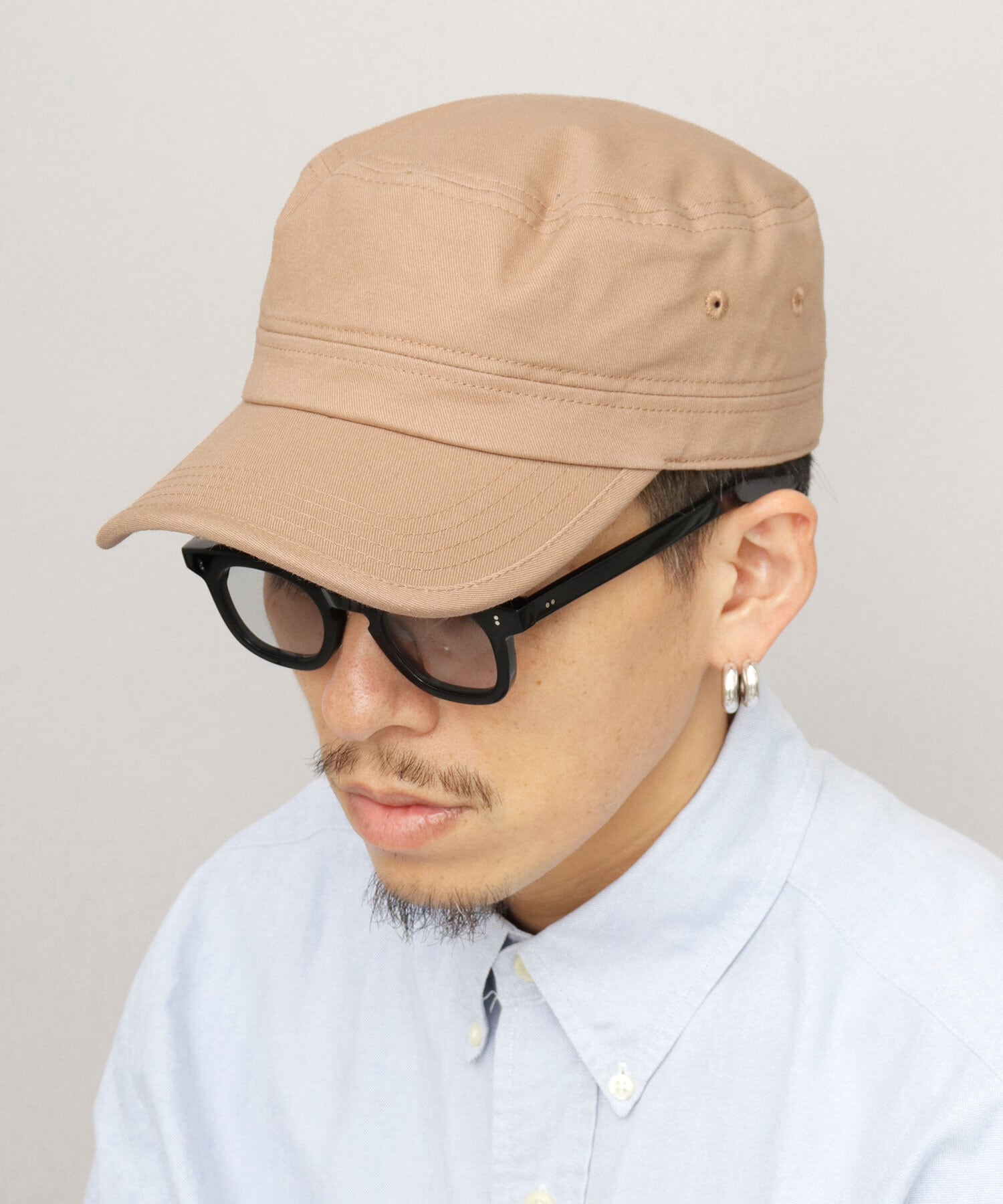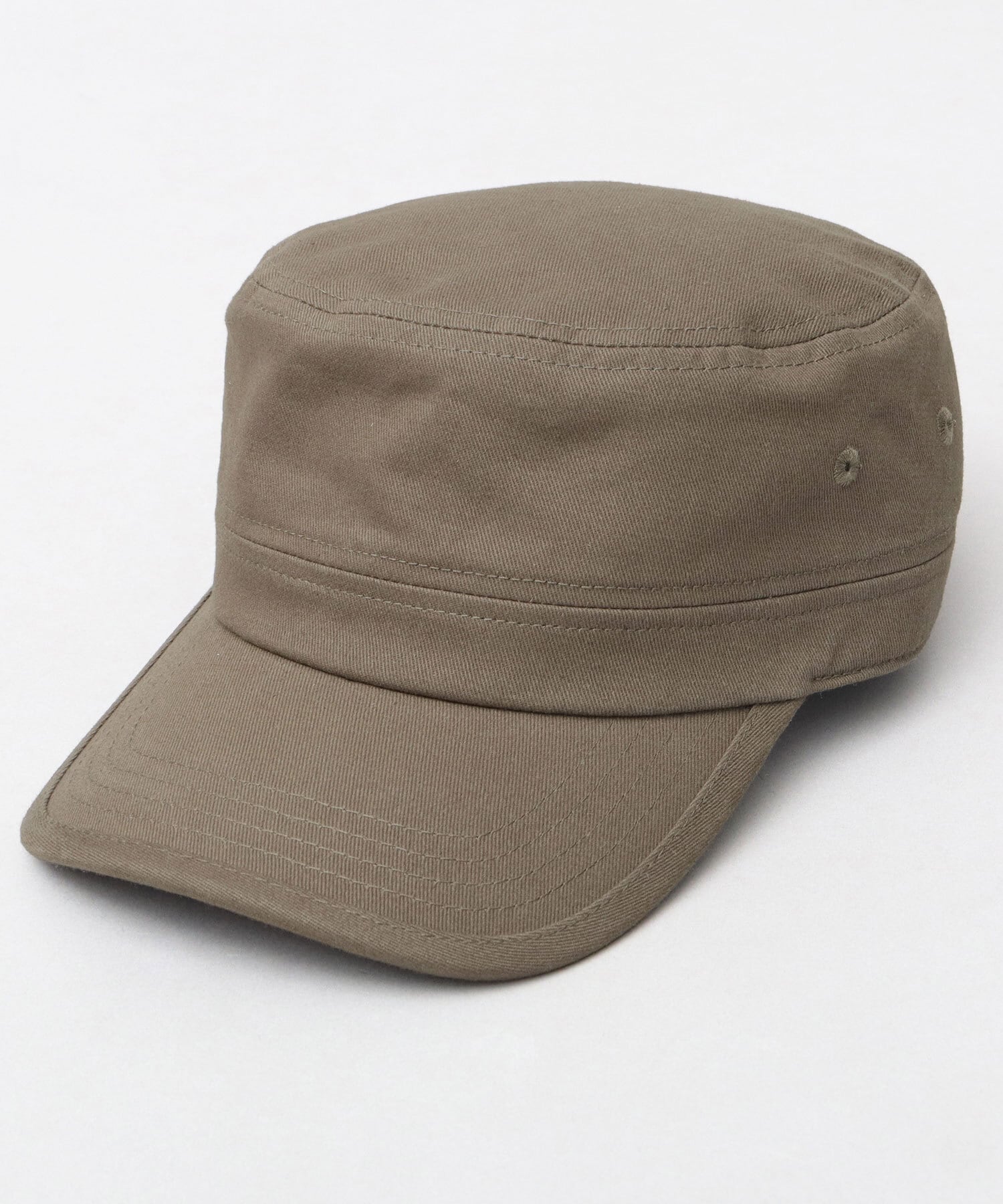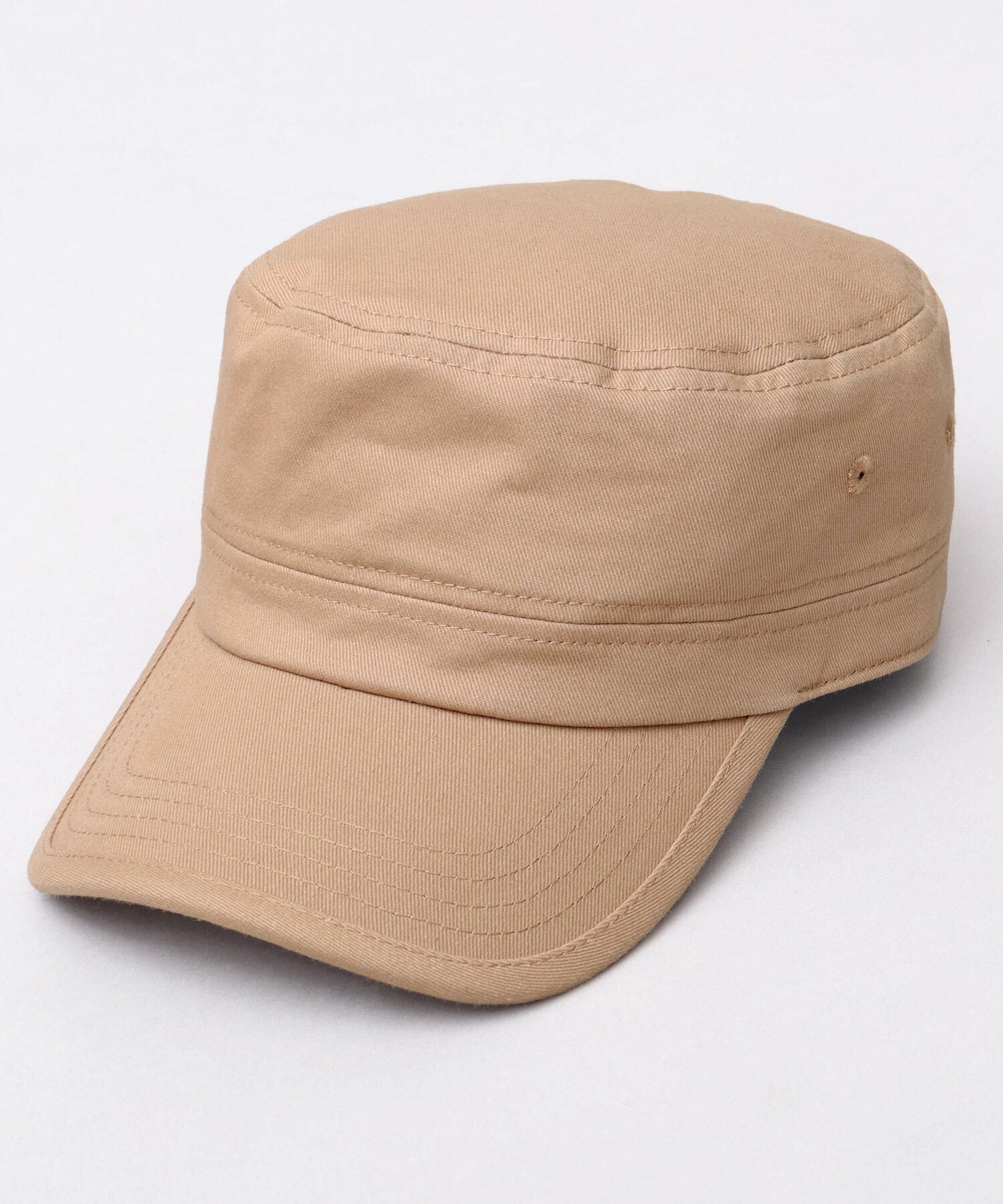 フラットなトップと円筒型クラウンの、スタンダードなシルエットのワークキャップ。