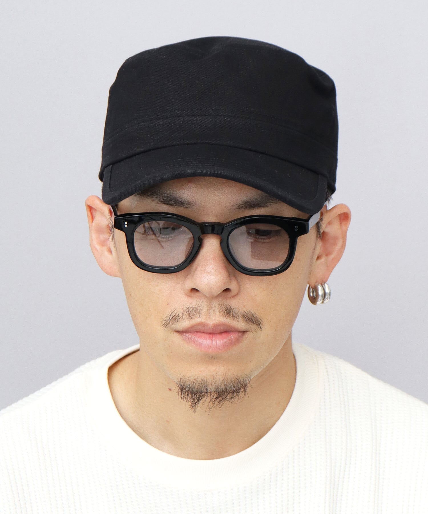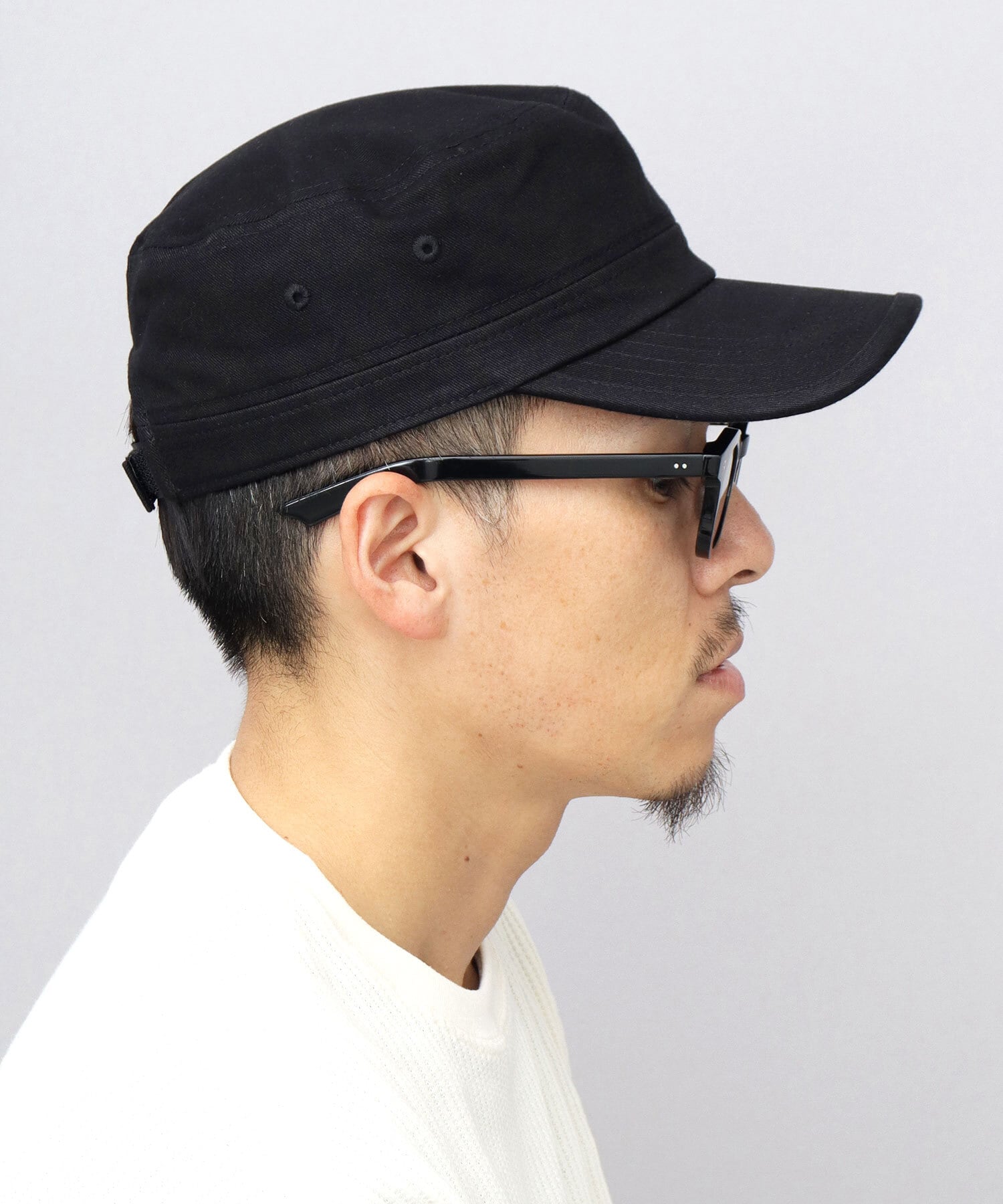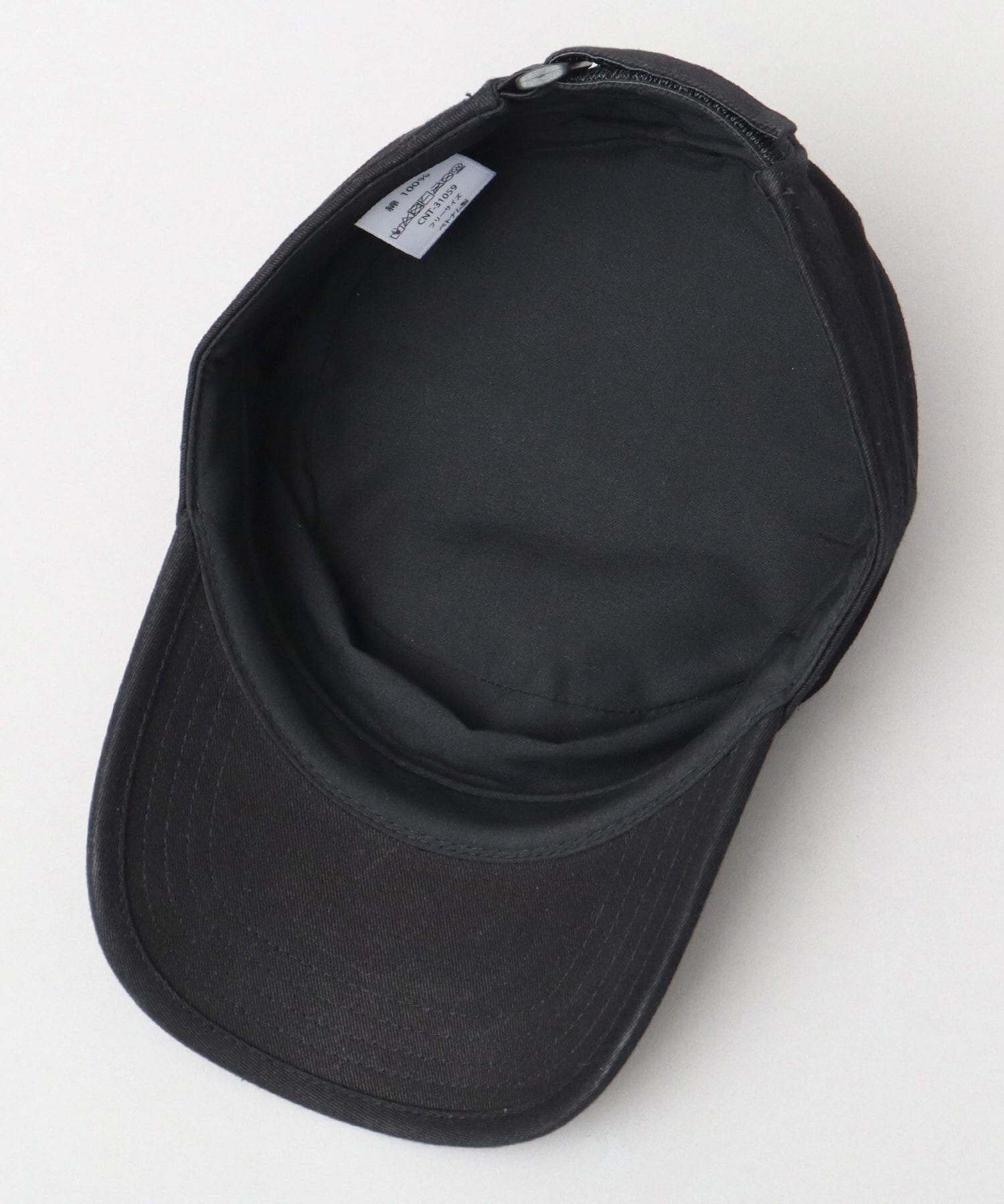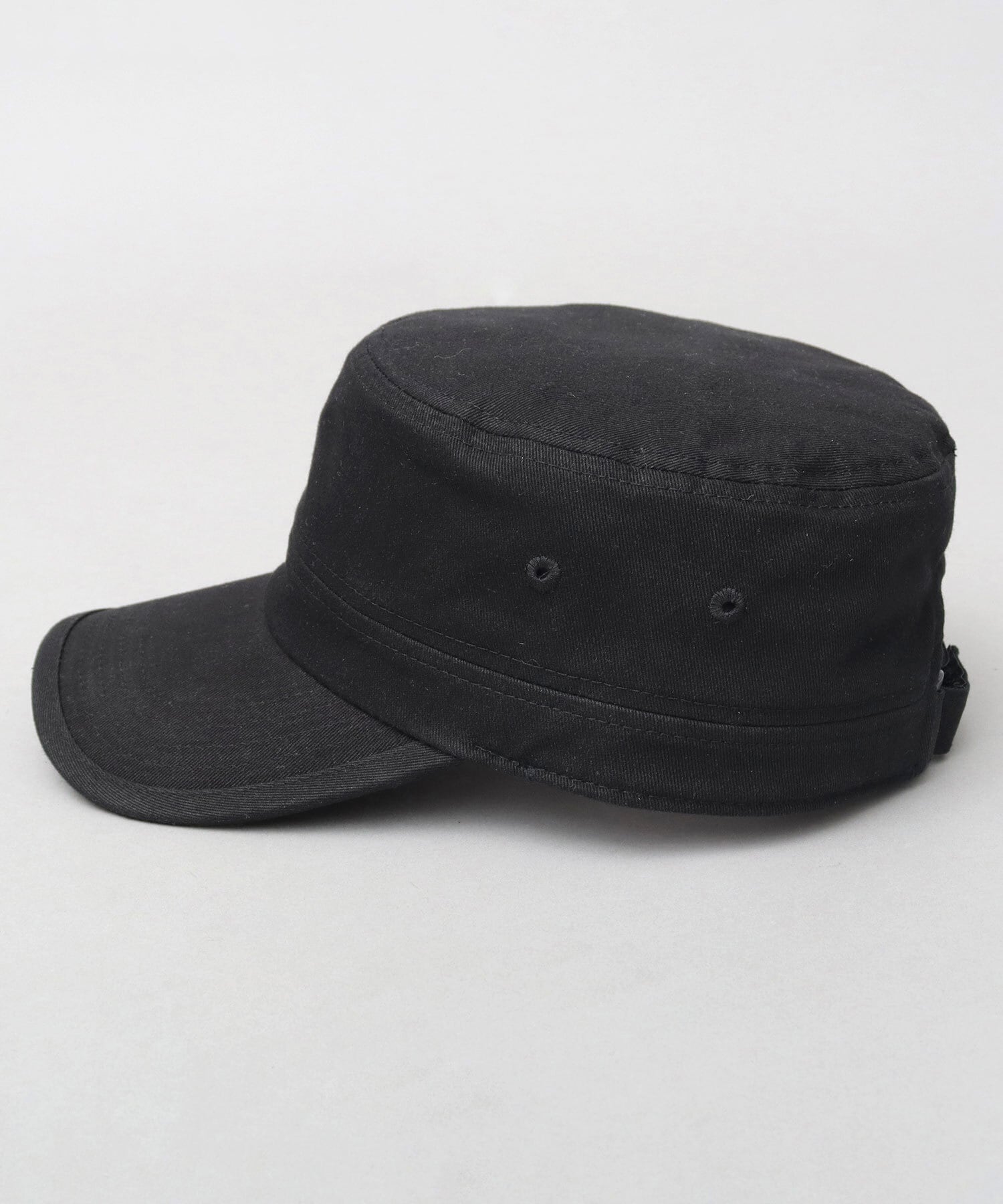 フラットなトップと円筒型クラウンの、スタンダードなシルエットのワークキャップ。