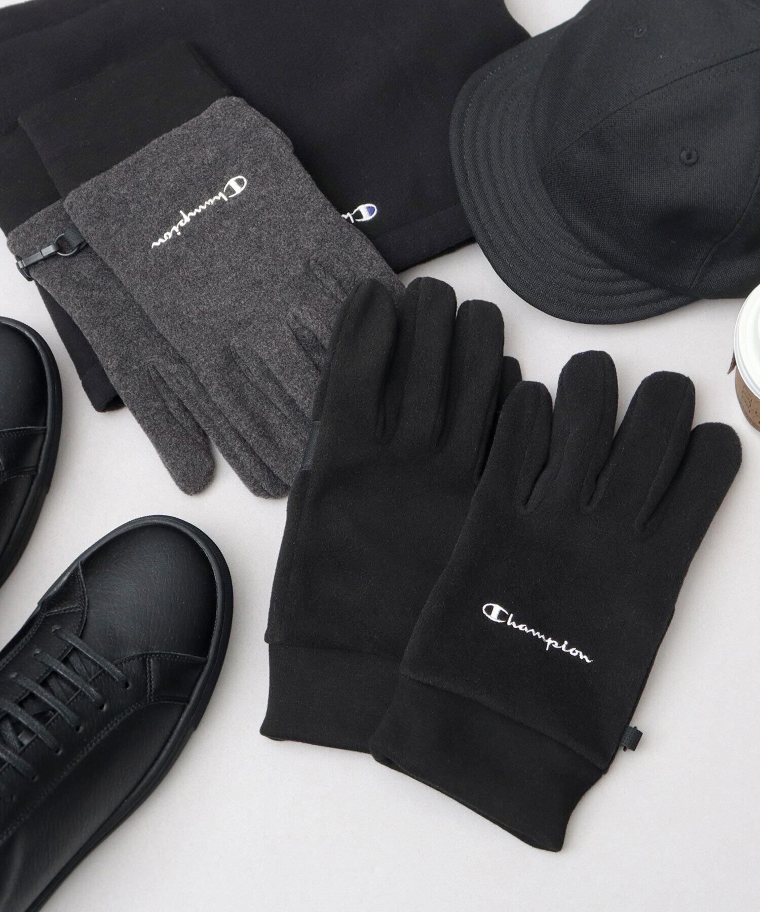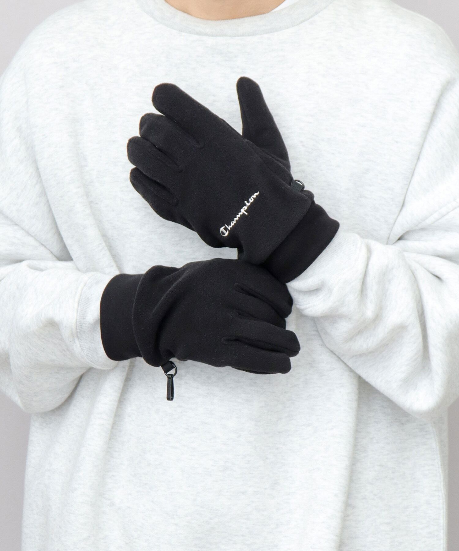 HYK-107 チャンピオン Champion 手袋 メンズ フリース グローブ 5本指 防寒 暖かい シンプル 通勤 通学 アウトドア カジュアル 無地 ロゴ ブラック チャコール おしゃれ | A.M.S.