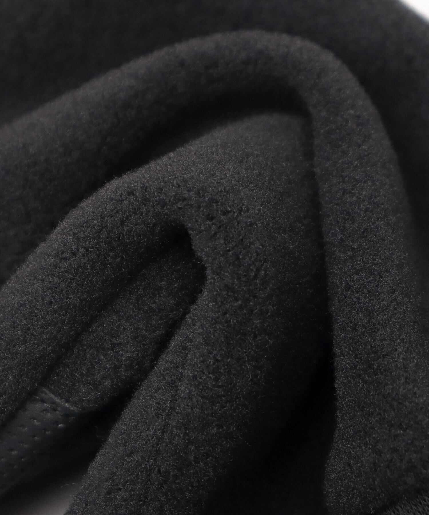 柔らかな肌触りのフリース素材を使用した、5本指グローブ。左手の甲部分に施された、ロゴ刺繍がワンポイントに。