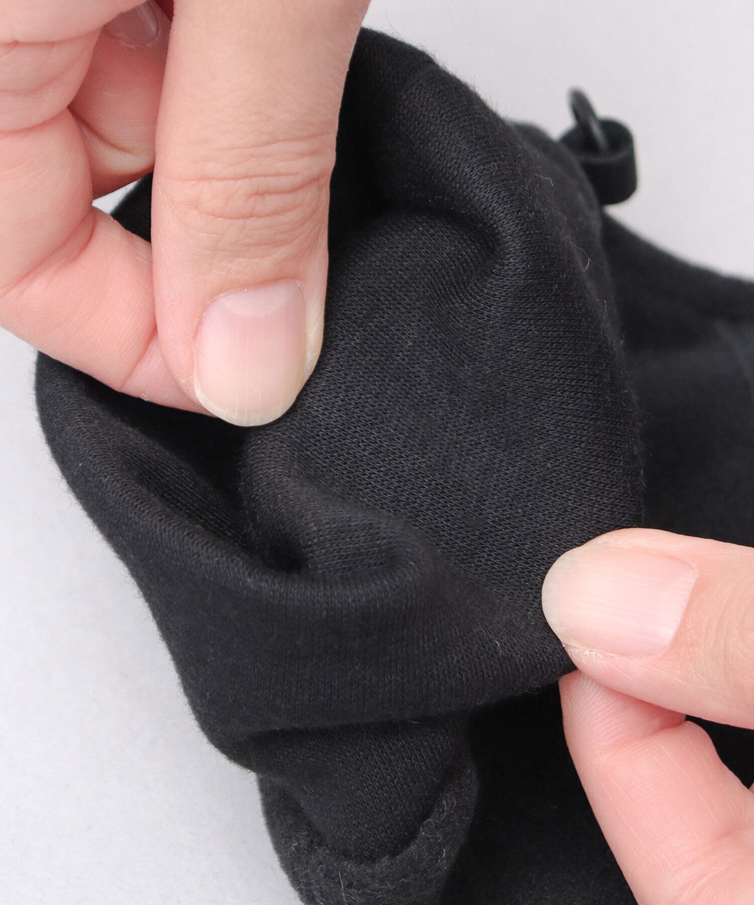 カフス部分(手首)は、リブのような伸縮性のある作りで、手首にしっかりフィット。生地を二重仕様にすることで、保温性をアップ。