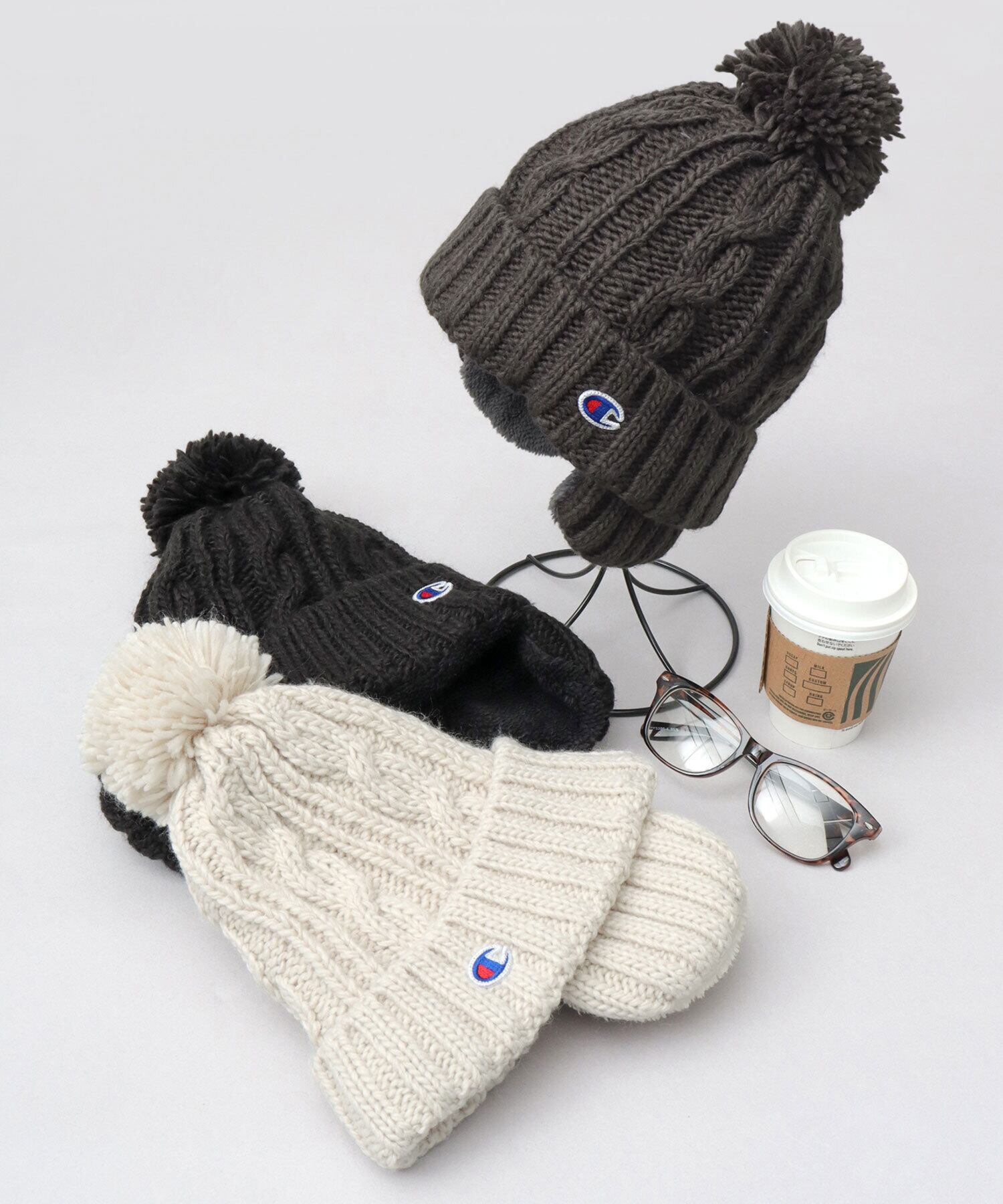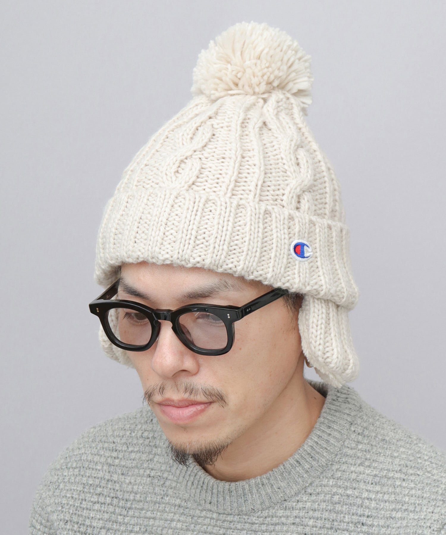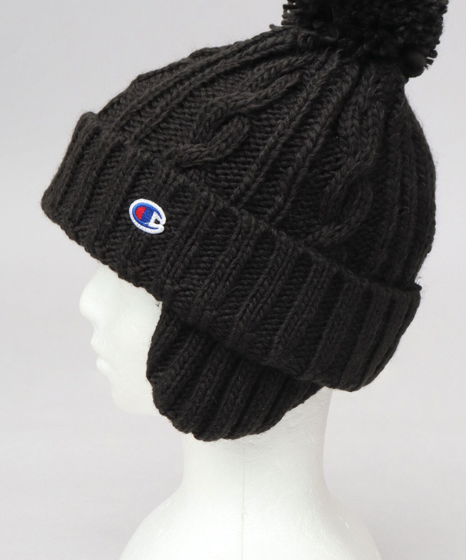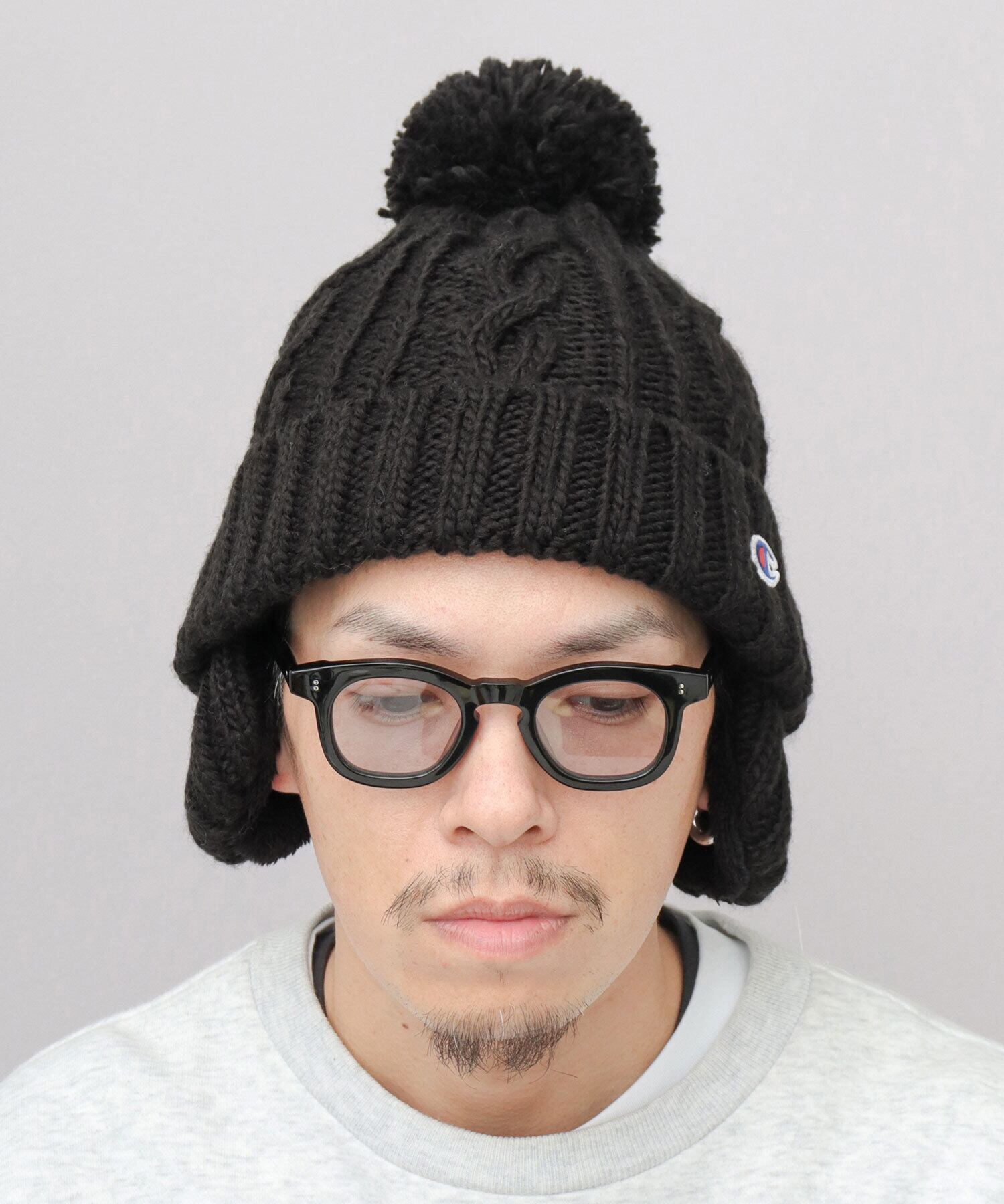 HYK-116 チャンピオン Champion ニット帽 メンズ レディース 耳当て付き ポンポン ケーブル ニットキャップ 裏ボア 防寒 あったか 帽子 冬 耳あて付き イヤーフラップ付き もこもこ ロゴ シンプル 通学 通勤 カジュアル アウトドア | A.M.S.