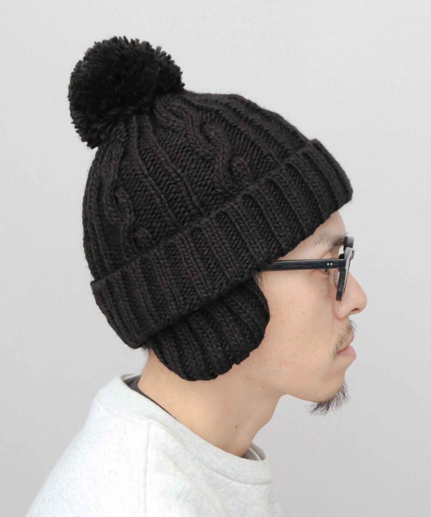 ◆耳当て付きで、寒い日のスタイリングに温もり感を◎ポンポン付きニット帽◆