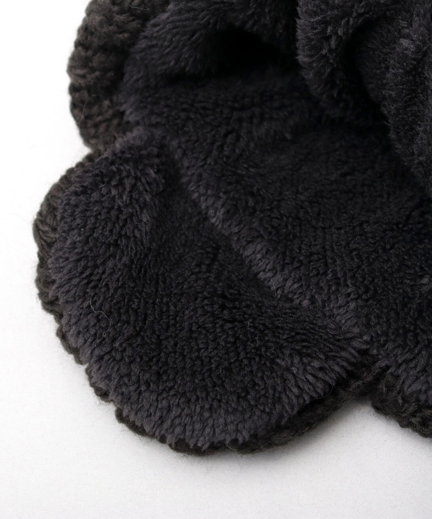 左右の耳当ては、着用した際にやや後方に位置するように配置。耳当て部分の裏地にもボア素材を使用し、耳元を優しく包み込みます。