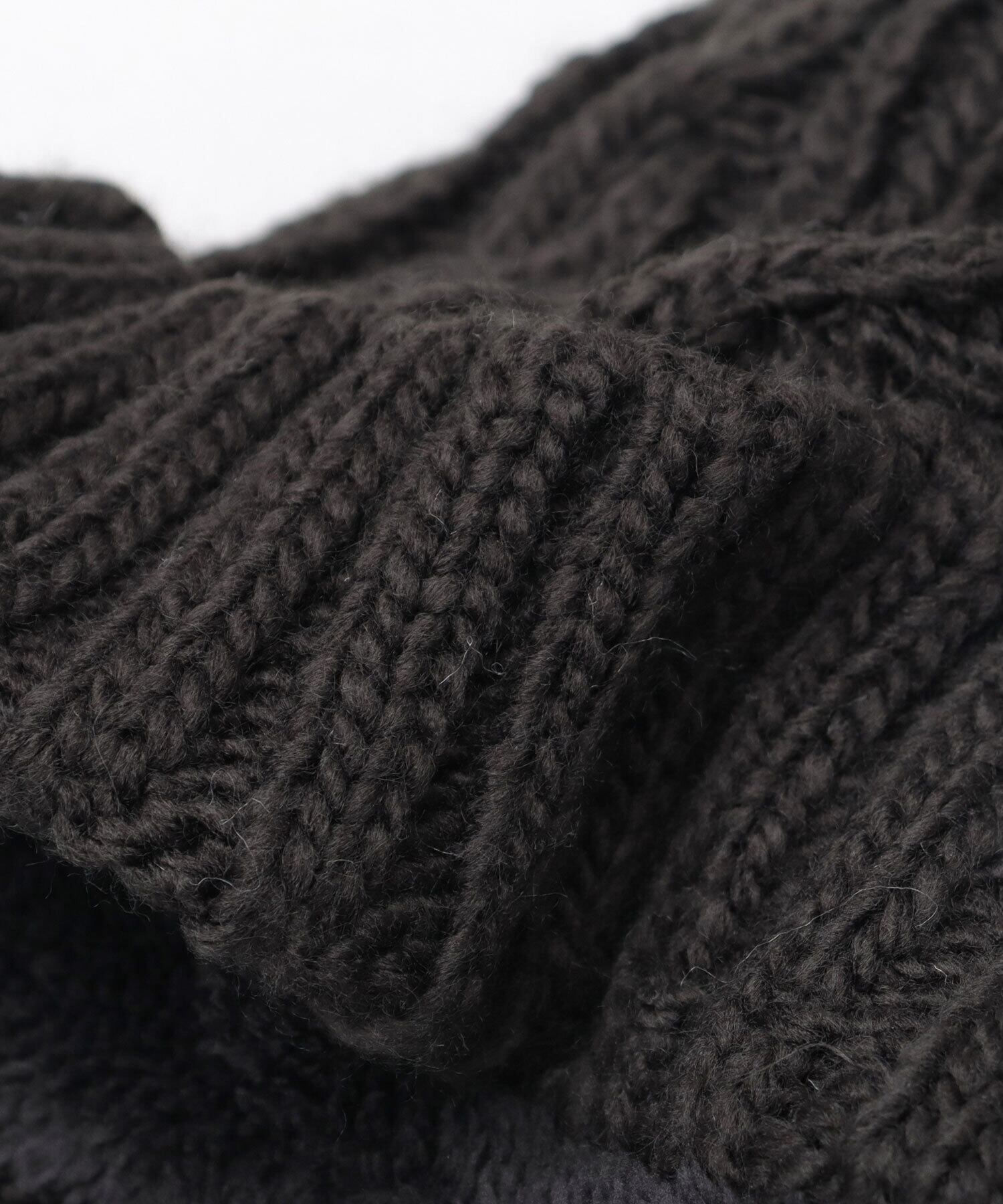 ローゲージのケーブル編みニットとリブ編みニットの切り替えの、上品さとカジュアルさを併せ持った表情。
