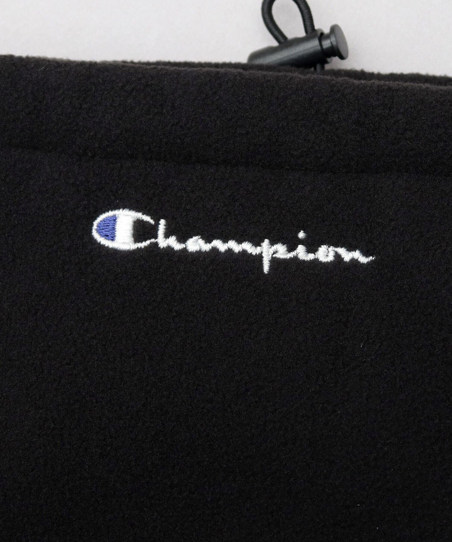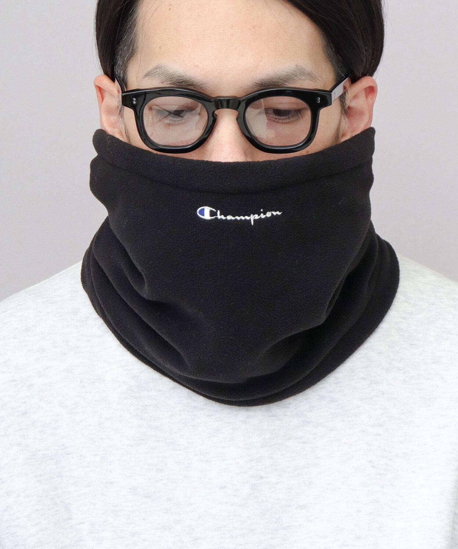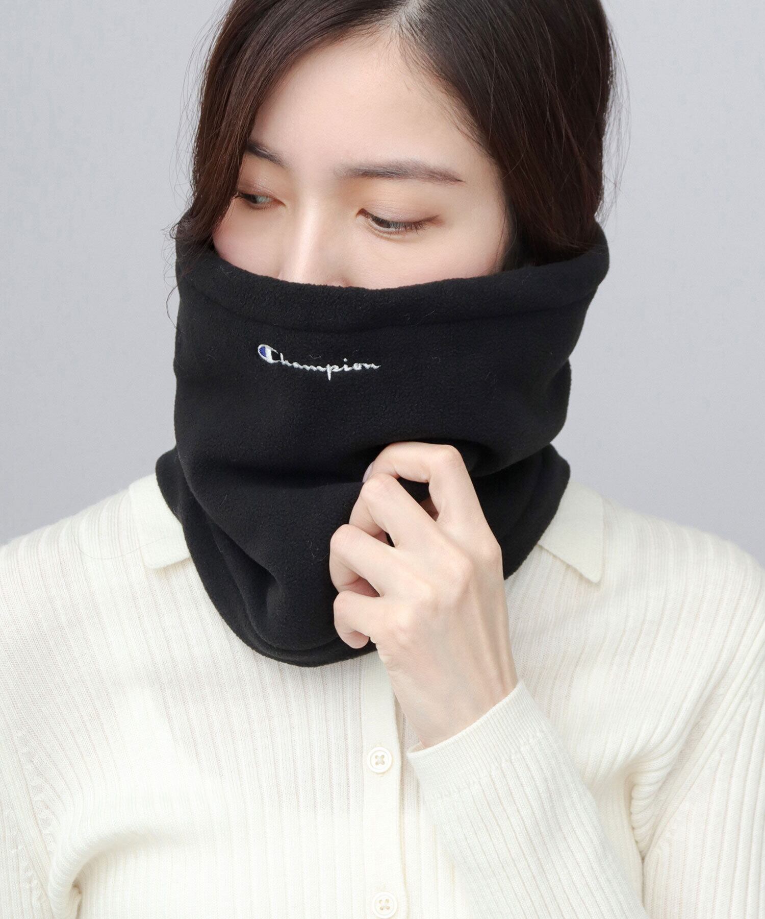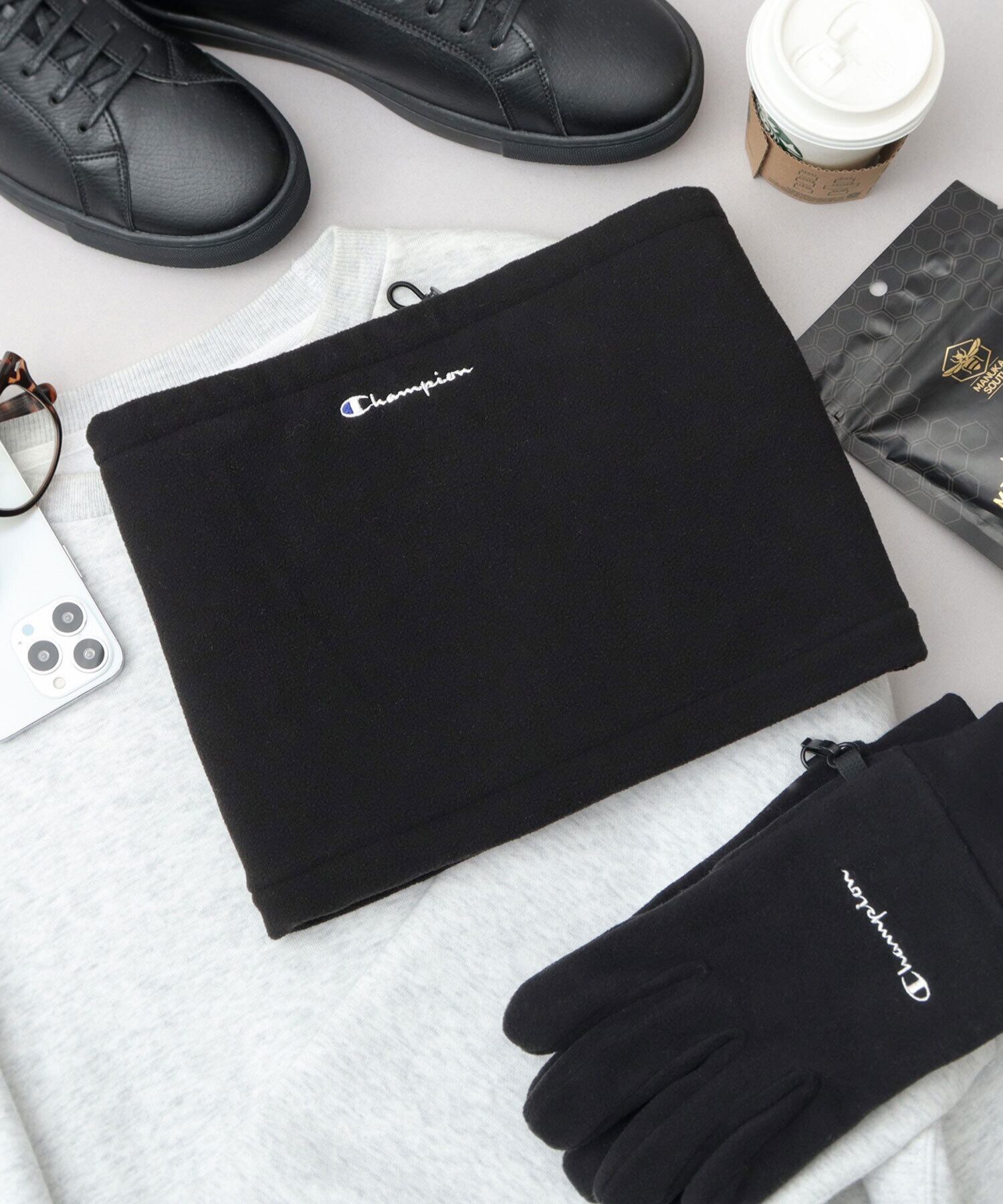 HYK-118 チャンピオン Champion ネックウォーマー メンズ レディース フリース 防寒 シンプル 無地 ふわふわ 裏ボア マイクロフリース スヌード マフラー ドローコード付き スポーツ 通勤 通学 アウトドア 冬 あったか 黒 ブラック