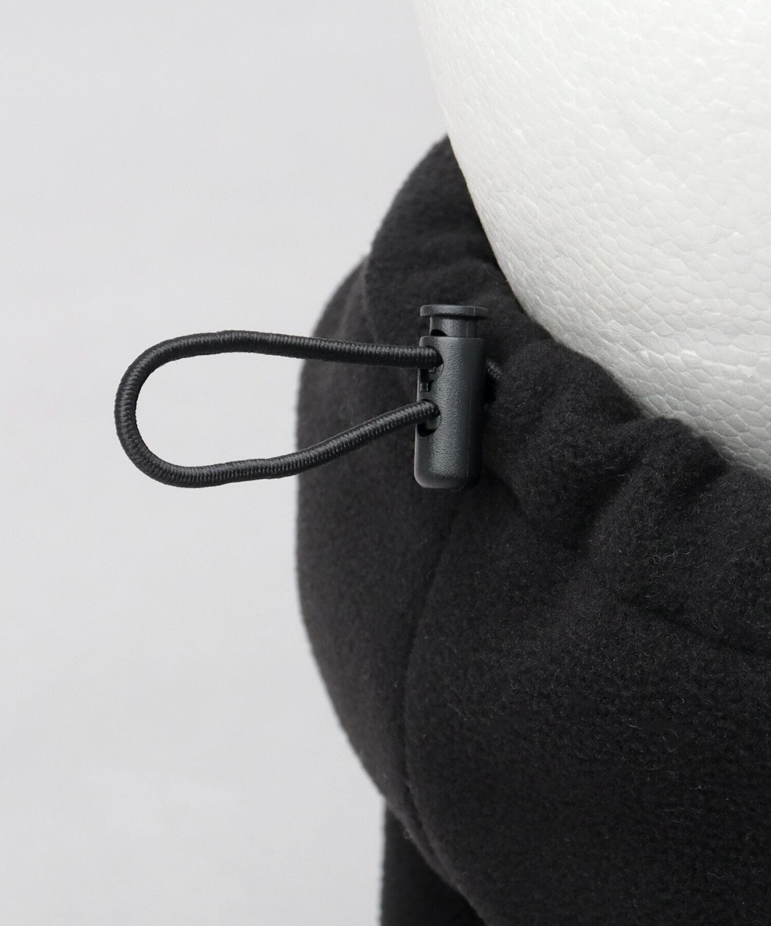 首部分にはゴム製のドローコードがあり、ストッパーで絞ることでフィット感の調節が可能。絞れば隙間風の侵入を防ぎ、しっかり防寒。