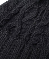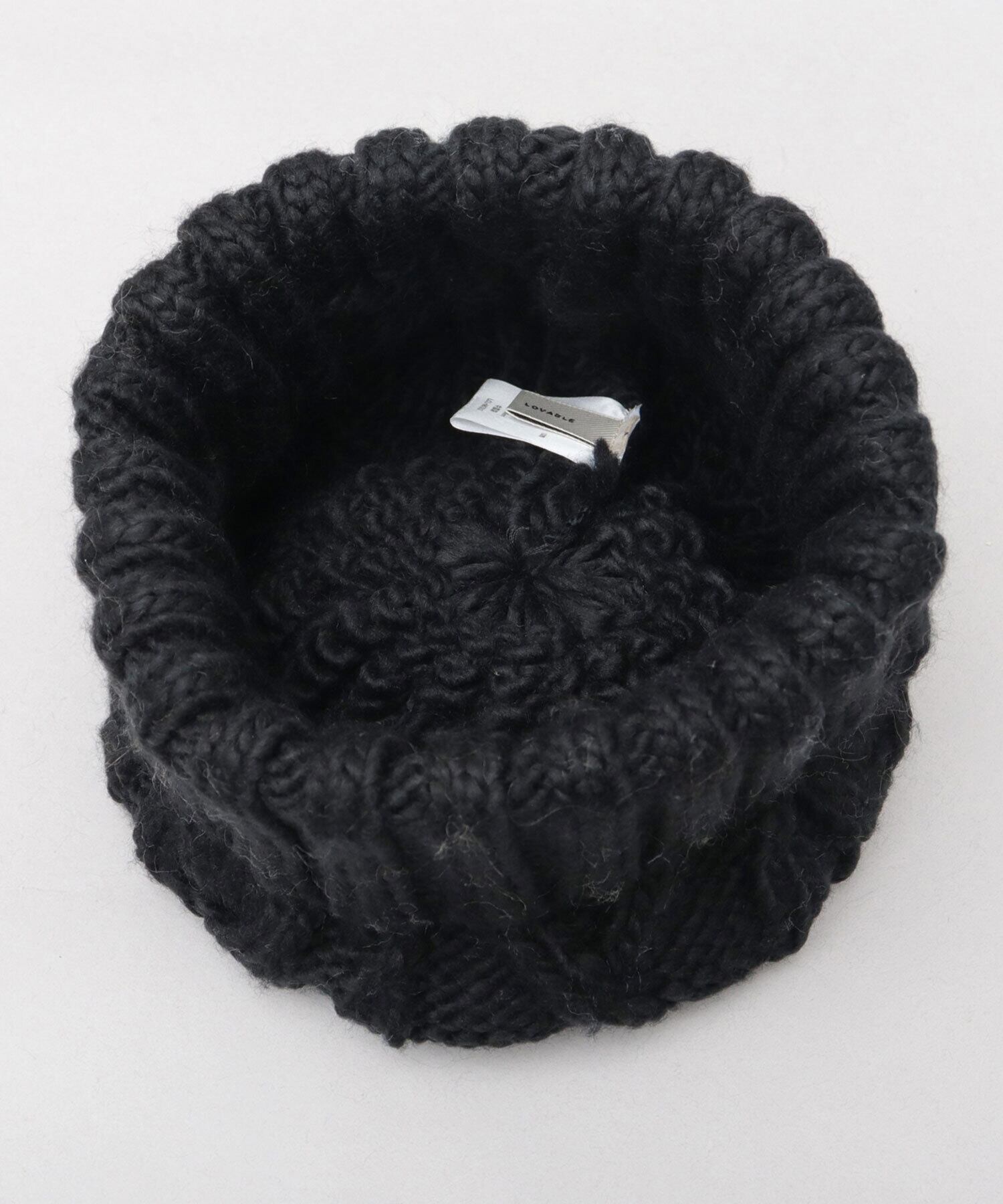 ボディには、ざっくりと編み込まれた立体感のあるケーブルニットを使用。やや緩めの絶妙なフィット感で、弾力のある、ふんわりとした軽い被り心地が魅力。